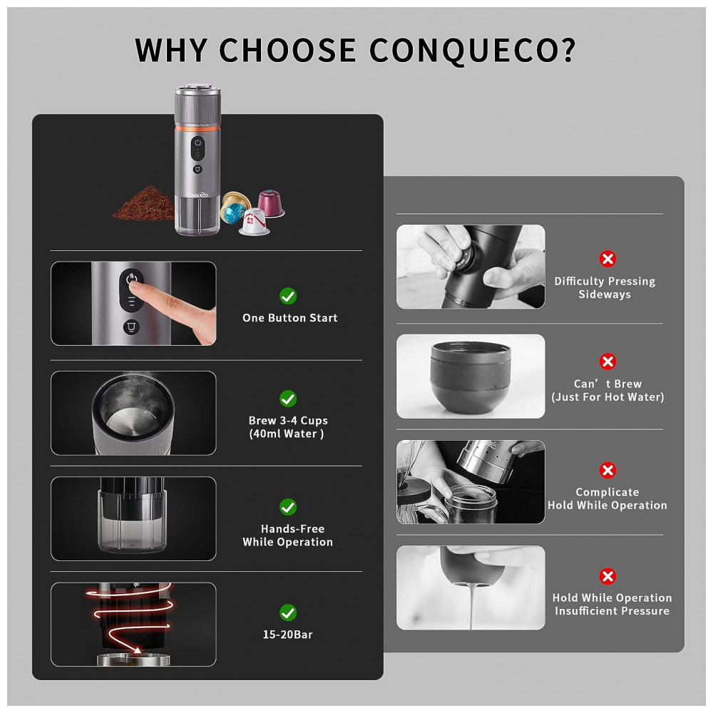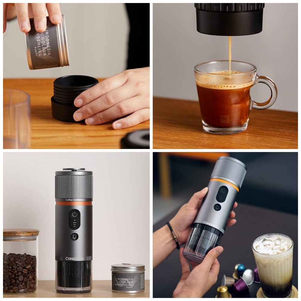 Máquina de Café Portátil USB para Carro com Bateria para Acampamento 12V CONQUECO Prata
