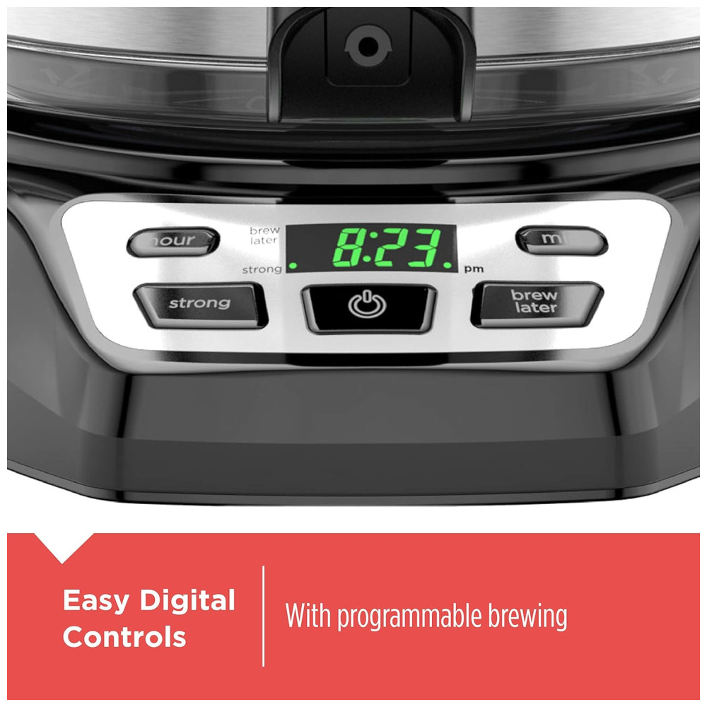 CONTROLES DIGITAIS: A programação QuickTouch permite definir o relógio digital e programar a função de preparo automático de 24 horas para que você possa preparar o café agora ou mais tarde.