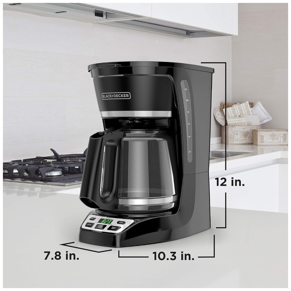 Máquina de Café Programável BLACK+DECKER 12 Xícaras Preta Modelo CM1070B-3 Com Recursos Automáticos para Preparo Prático e Eficiente de Café.