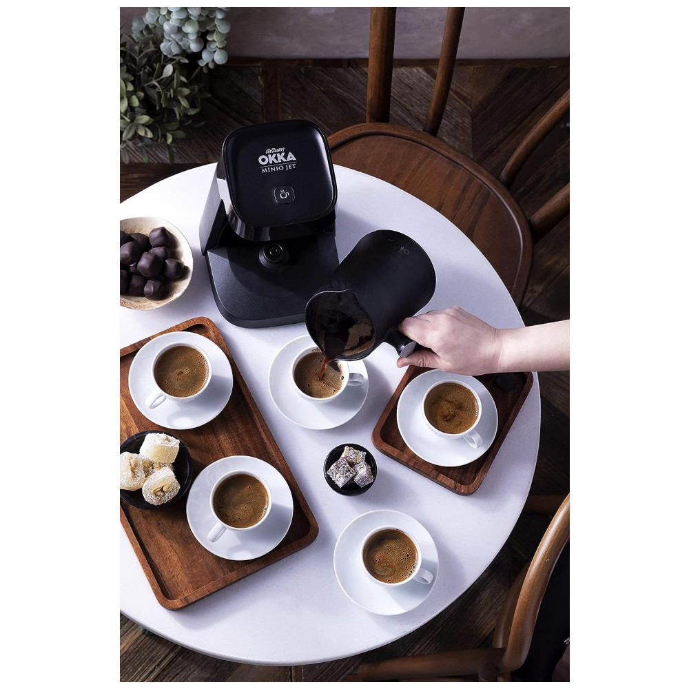 O mais membro da família Arzum Okka, o Okka Jet, traz conveniência e elegância à sua experiência de café turco. Com o Okka Jet, você pode preparar até cinco xícaras de café turco de uma só vez. Assim como todos os produtos elétricos vendidos pela Coffee Talks, o Okka Minio opera com 120 V, vem com um plugue dos EUA e é totalmente compatível com os padrões dos EUA.