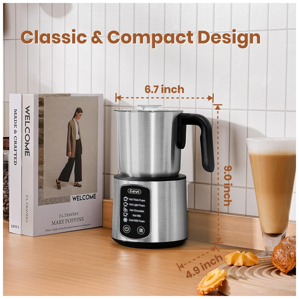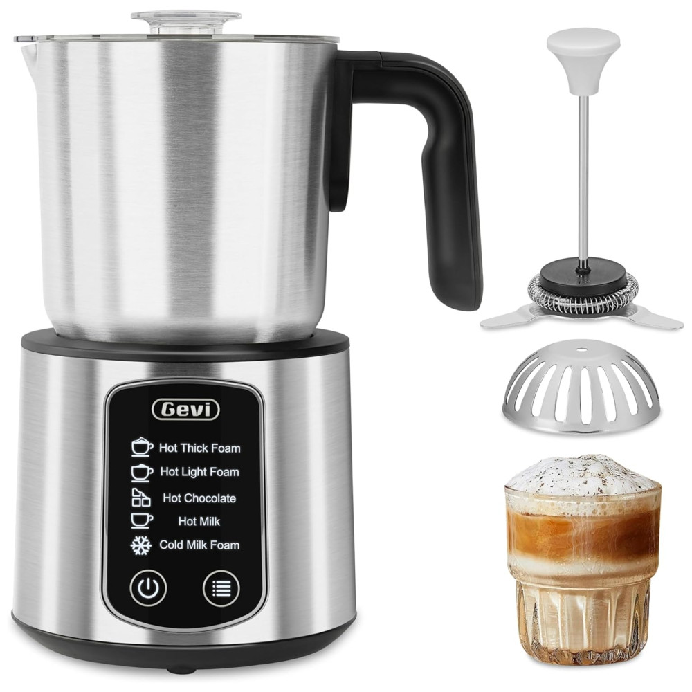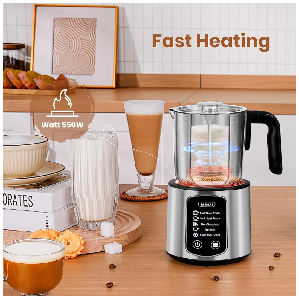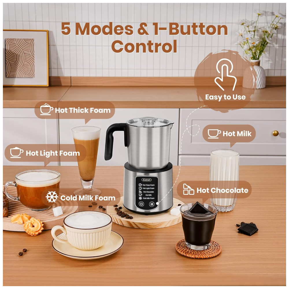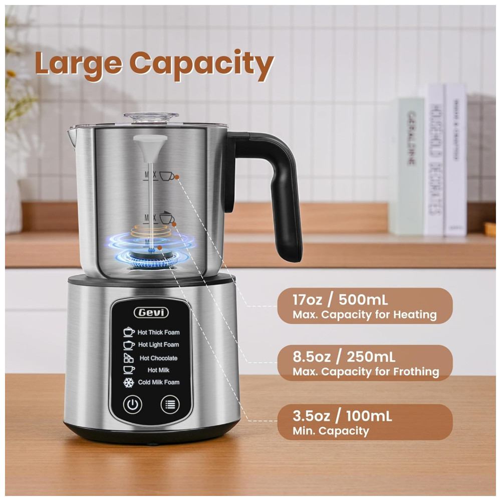 Máquina de Chocolate Quente Gevi com Espumador de Leite 5 em 1 e Vaporizador Leiteira Profissional 500ml Inox Espumador Quente/Frio