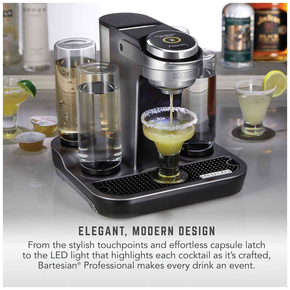Recrie o sabor, a experiência e o ambiente de coquetéis de bar premium com a Bartesian Professional Cocktail Machine. Desde os elegantes pontos de contato e o fecho fácil da cápsula até a luz LED que destaca cada coquetel à medida que é elaborado, o Bartesian Professional transforma cada bebida em um evento.