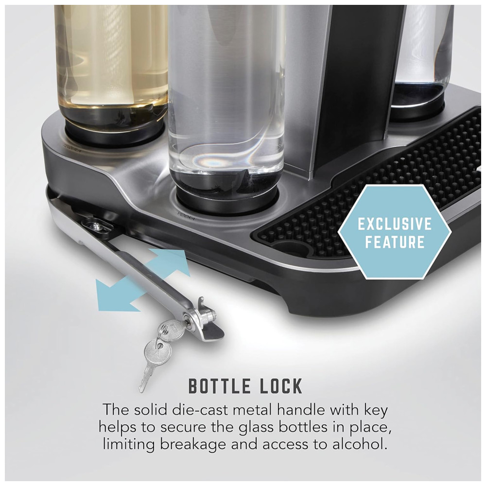 Para limitar o acesso ao álcool, a alça de metal fundido sólido com chave ajuda a fixar as garrafas de vidro no lugar. Para menos tempo de limpeza e mais tempo de aproveitamento, o Bartesian Professional executa automaticamente um ciclo de enxágue para evitar que os ingredientes do coquetel anterior se misturem com o seguinte. Inclui 5 garrafas de vidro premium para guardar a bebida de sua escolha.