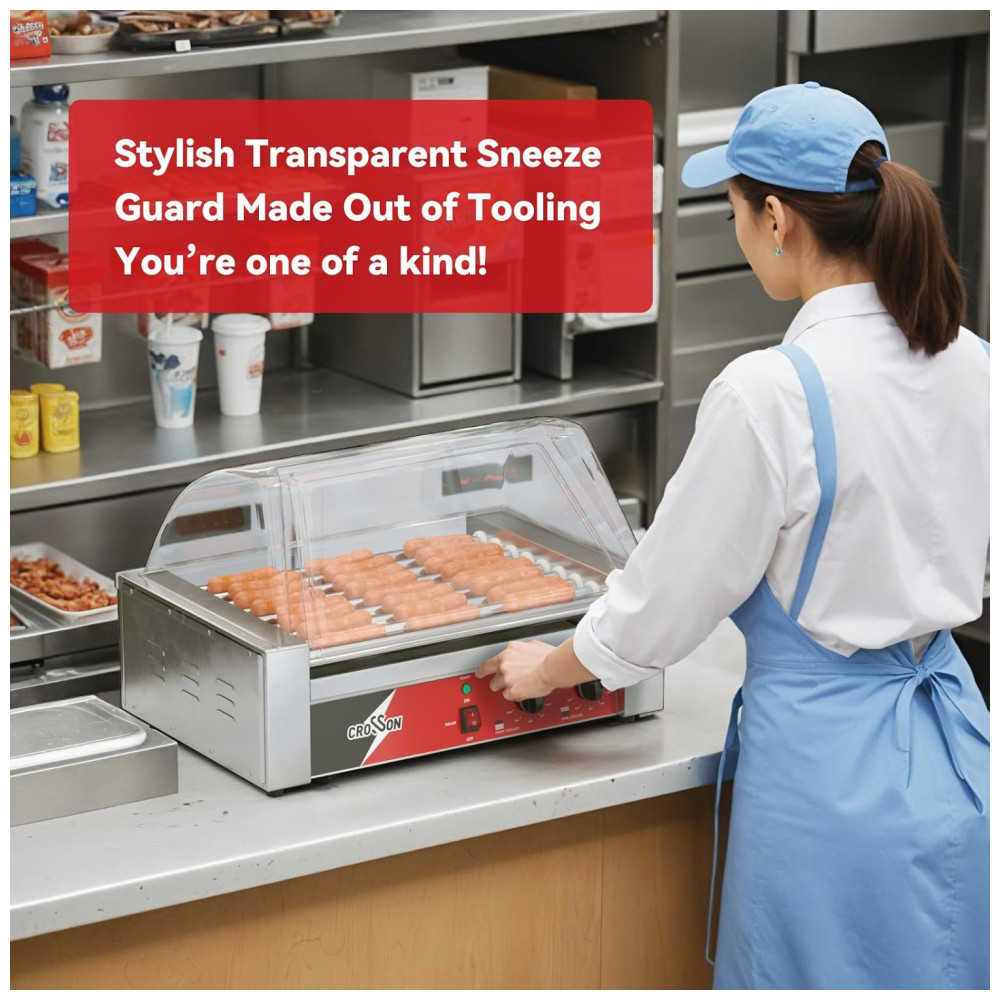 Máquina de Cozinhar Salsichas CROSSON Hot Dog com 9 Rolos de Aço Inoxidável 304 Antiaderentes e Controle de Temperatura Duplo