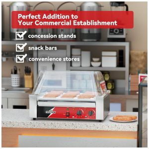 Cozimento Uniforme e Eficiente: Com 9 rolos de aço inoxidável 304 antiaderentes, esta máquina suporta até 24 salsichas e gira 360 graus para cozinhar todos os itens de maneira uniforme. Esqueça a contaminação do ar indesejada, graças à proteção contra esguichos transparente. Motor super silencioso que leva a clientes e funcionários felizes. Controles de Temperatura Dupla de até 392F: Com 1350W de potência de aquecimento, oferece controle independente sobre os rolos da frente e de trás, permitindo preparar dois tipos de alimentos ao mesmo tempo ou usar zonas separadas. Limpeza Fácil: Bandeja removível para sucos e óleos, rolos de fácil limpeza com água morna e sabão, e proteção contra esguichos removível. Adição Perfeita para Estabelecimentos Comerciais: Ideal para lanchonetes, bares e lojas de conveniência, com cabo de energia UL listado, termostatos e construção comercial compacta. CROSSON, qualidade garantida.