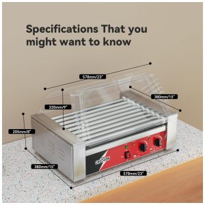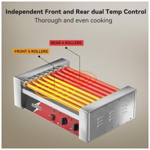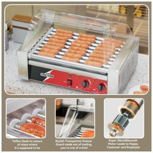 Máquina de Cozinhar Salsichas CROSSON Hot Dog com 9 Rolos de Aço Inoxidável 304 Antiaderentes e Controle de Temperatura Duplo