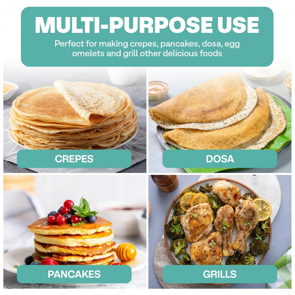 O kit de acessórios de 3 peças inclui espalhador de massa, virador de crepe e concha.