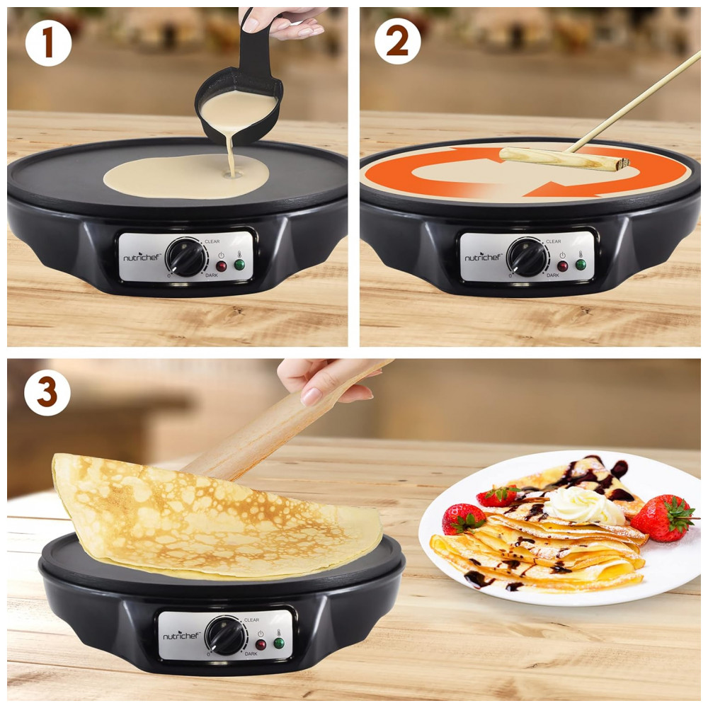 Máquina de Crepe Elétrica antiaderente de Aço inoxidável 110v NUTRICHEF PCRM15D Preto