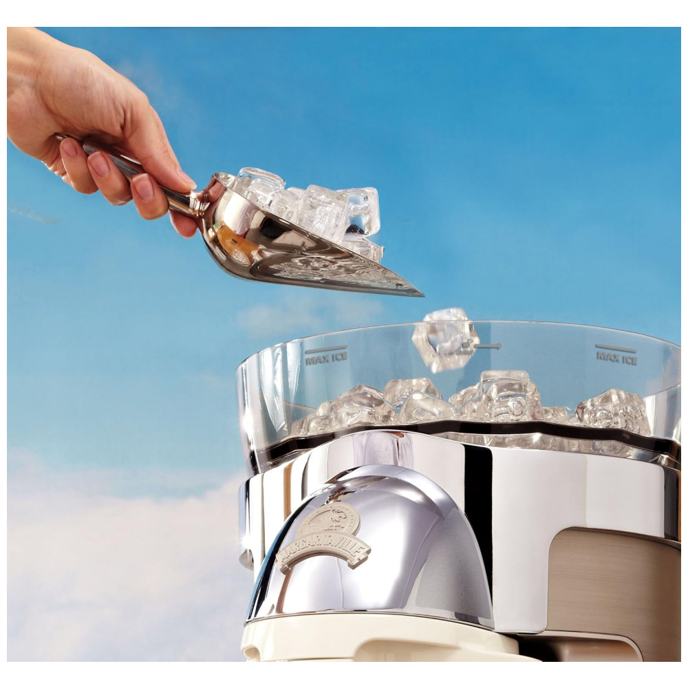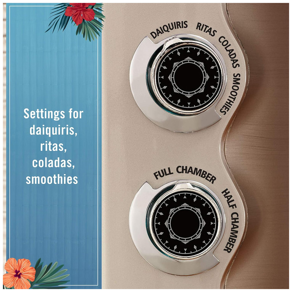 1,8 Litros capacidade da jarra 4 configurações de bebida pré programadas Margaritas, Daiquiris, Coladas e Smoothies As configurações podem ser programadas para misturar tamanhos de lote de meia câmara ou de câmara cheia Controles manuais de barbear e misturar para consistência , mistura personalizada Metal escovado de qualidade superior invólucro com detalhes em aço inoxidável polido Observação consulte o manual do usuário antes de usar e para obter as etapas de solução de problemas.