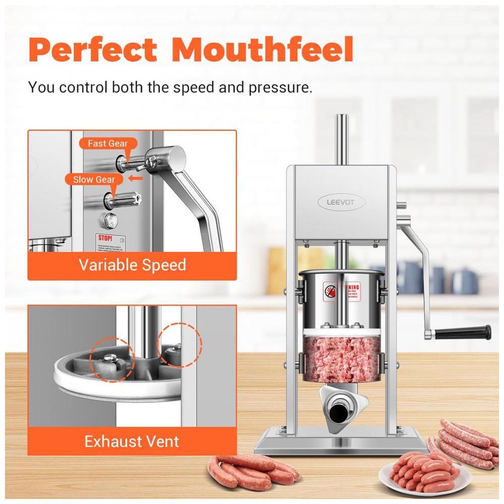 A Máquina de Encher Linguiça de Aço Inoxidável 304 da LEEVOT oferece praticidade e eficiência na preparação de linguiças. Com 2 velocidades de enchimento, capacidade de 2,8 litros, design requintado com válvula de pistão bidirecional e 5 tipos de tubos de enchimento em aço inoxidável, este equipamento é essencial para sua casa ou negócio. Feita de aço inoxidável 304 grau alimentício, garante segurança em cada mordida. Prepare linguiças italianas, salames aromatizados ou linguiças mais grossas com facilidade e precisão. Acesse o link para adquirir o seu!