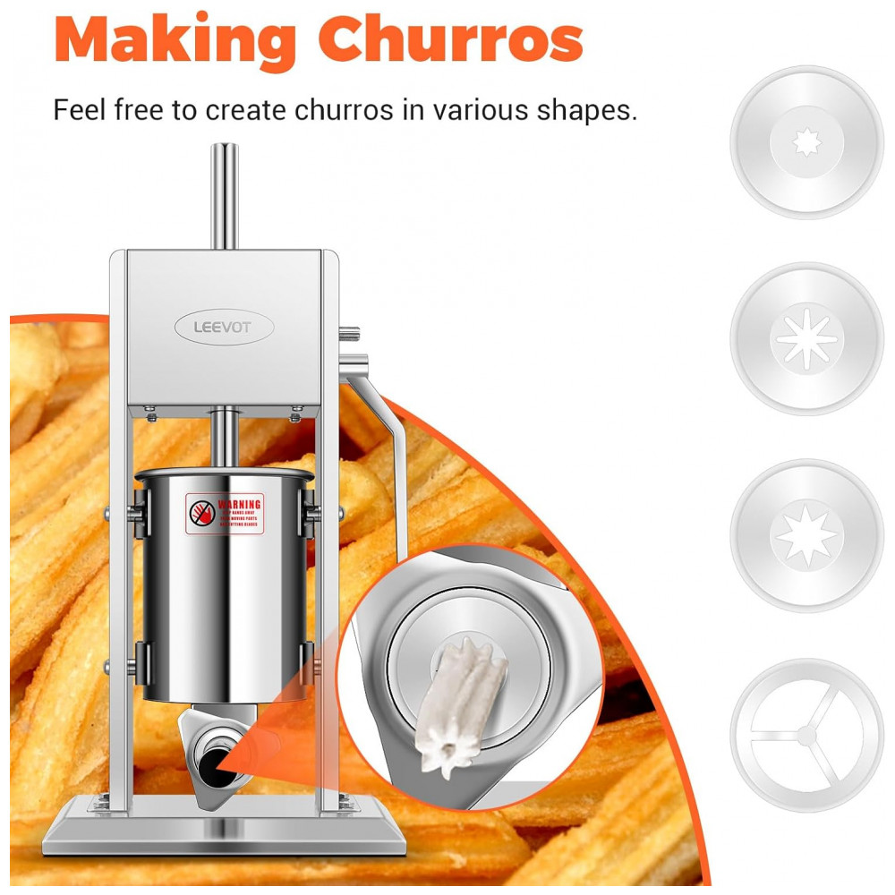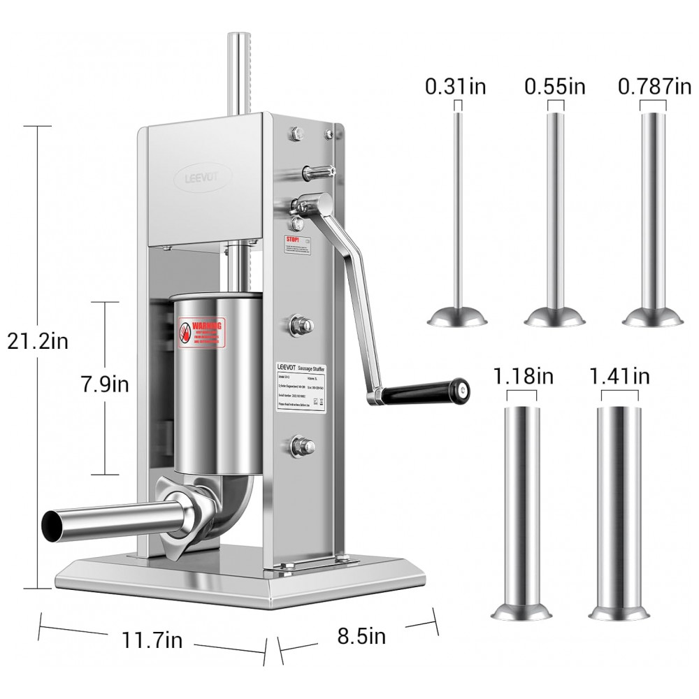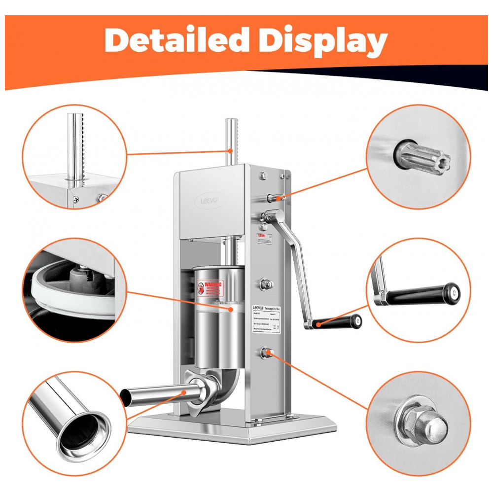 Máquina de Encher Linguiça de Aço Inoxidável 304 LEEVOT 7Lb3L Ajustável 2 Velocidades 5 Tubos de Enchimento Prateados