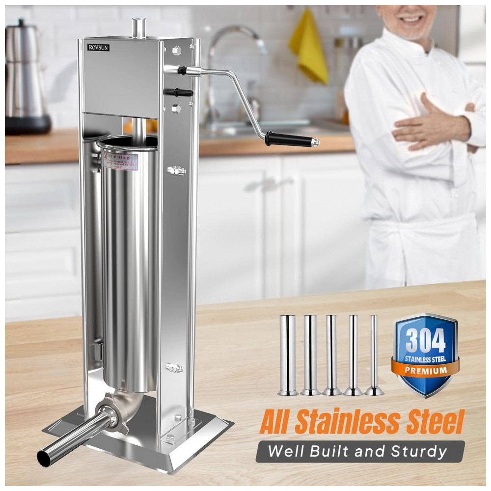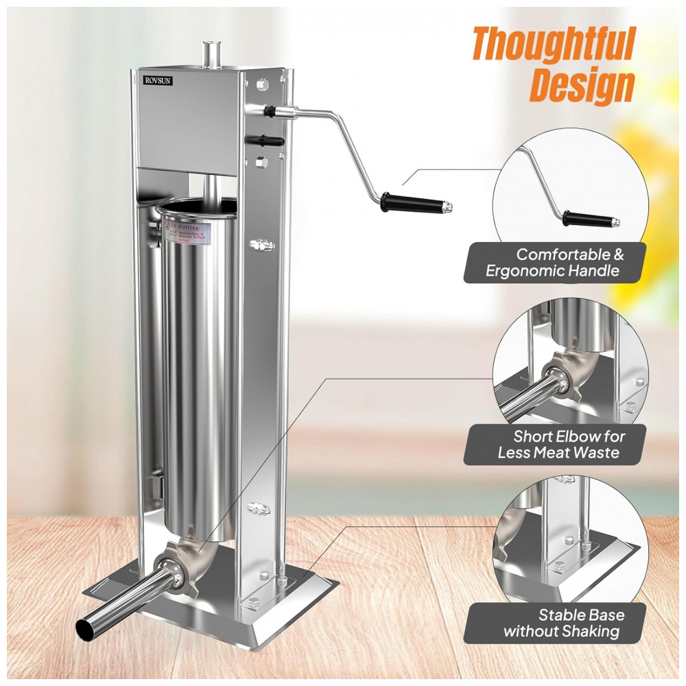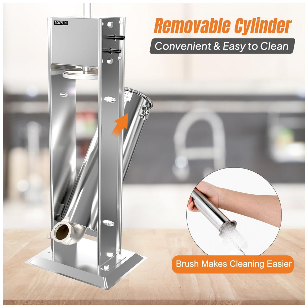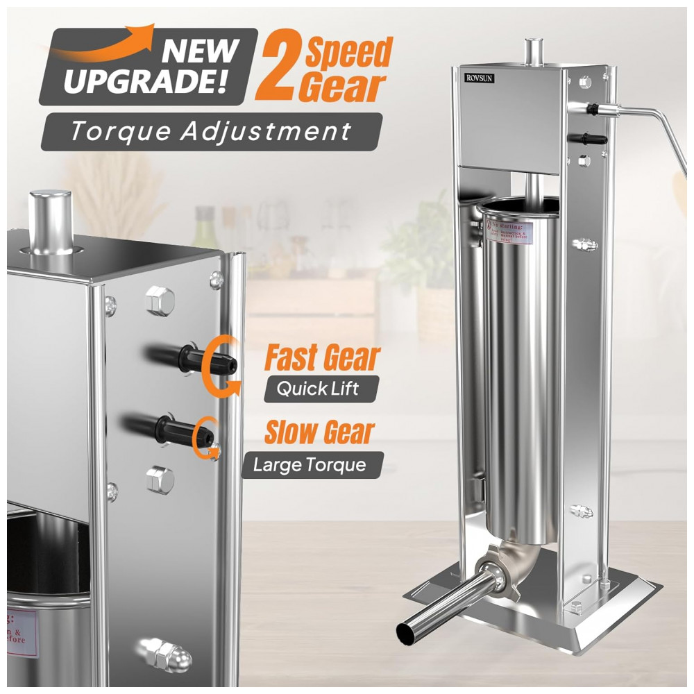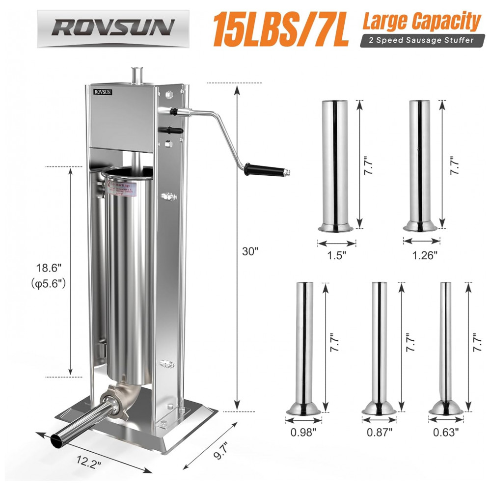 Máquina de Encher Linguiça ROVSUN 15LBS7L Manual Dois Velocidades de Aço Inoxidável Ideal para Uso Comercial e Doméstico