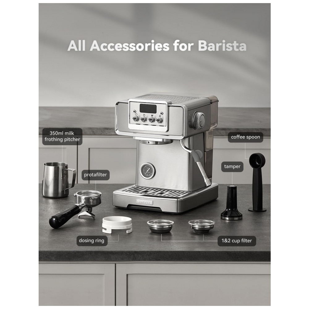 Máquina de Espresso 15 Bar 58mm Vaporizador Profissional Manômetro Neretva Retrô Inox Prata 220V