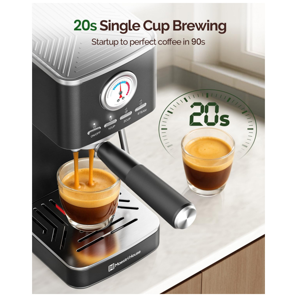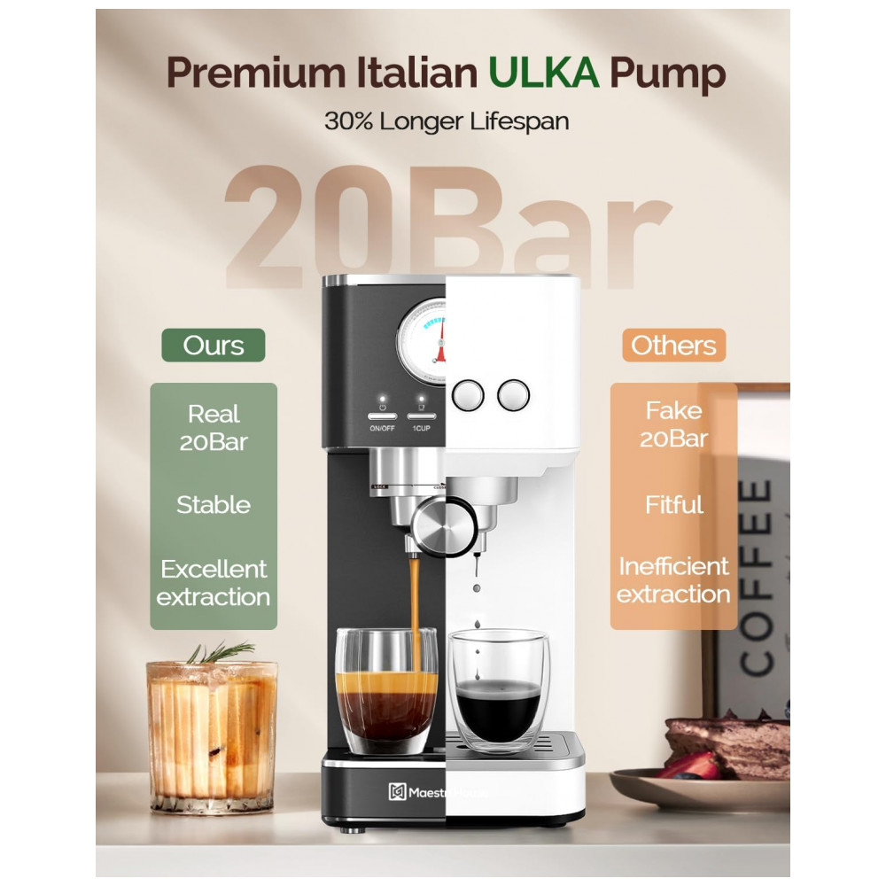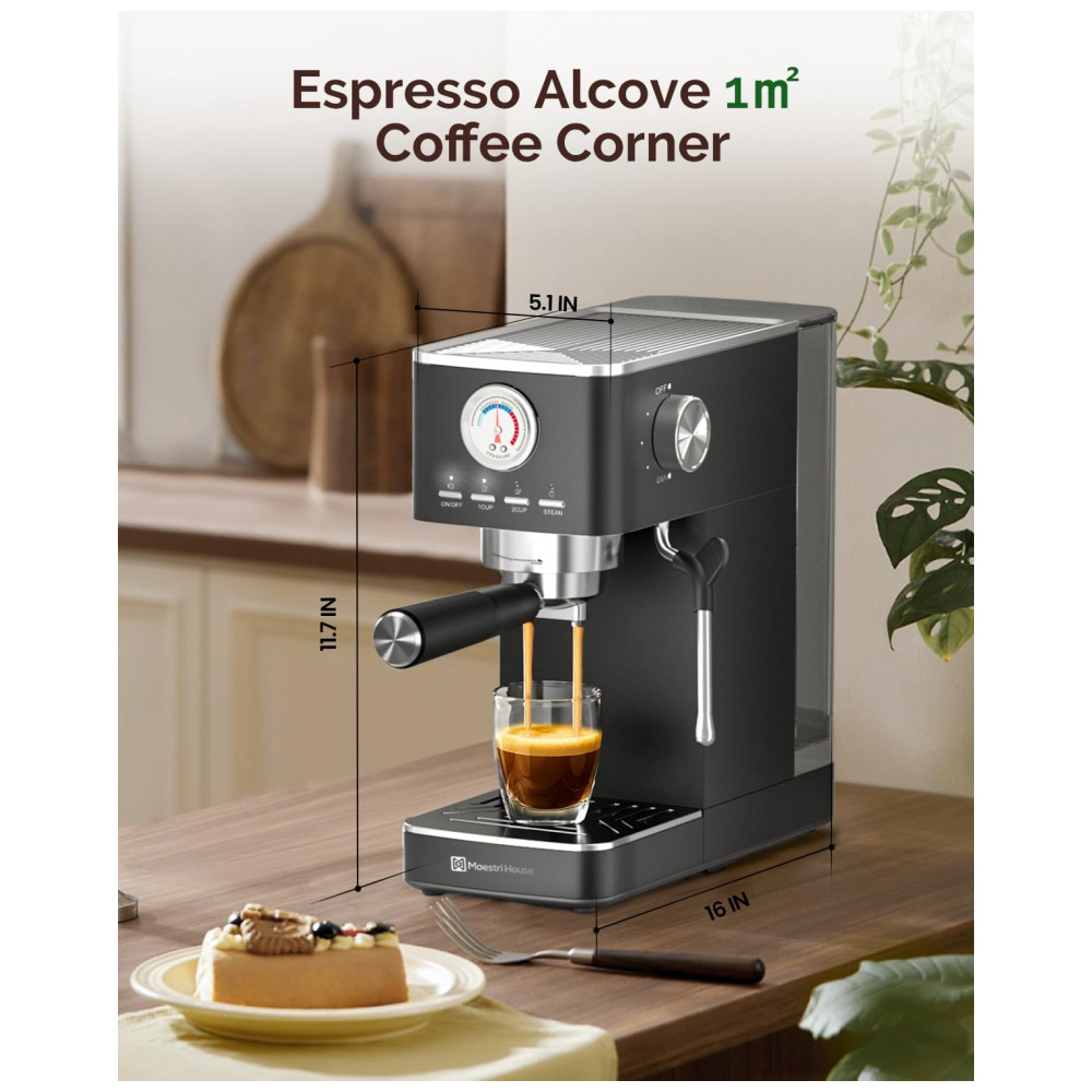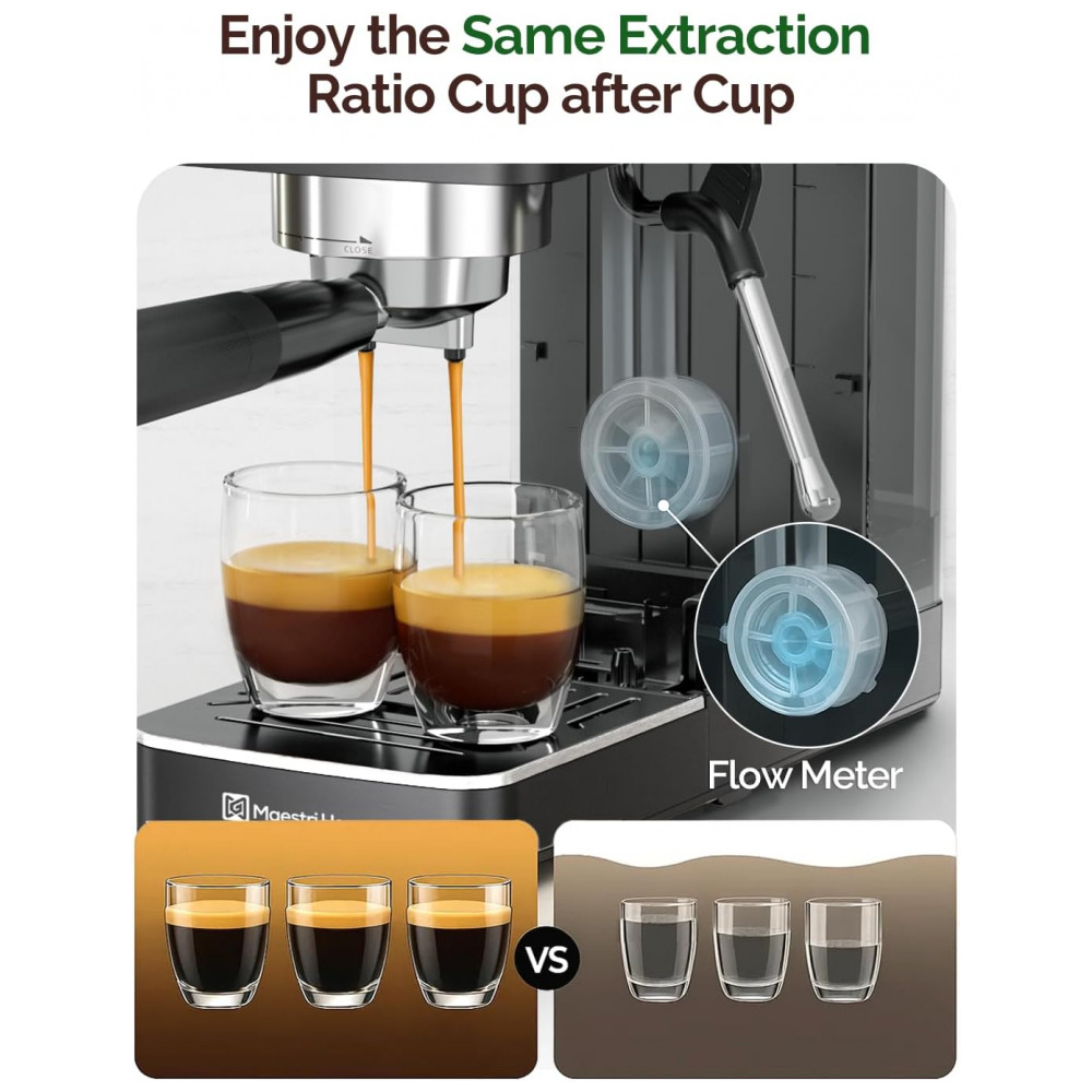 Máquina de Espresso 20 Bar Bomba ULKA Flowmeter Vaporizador Maestri House Inox/Preto 110V