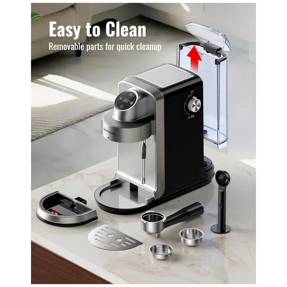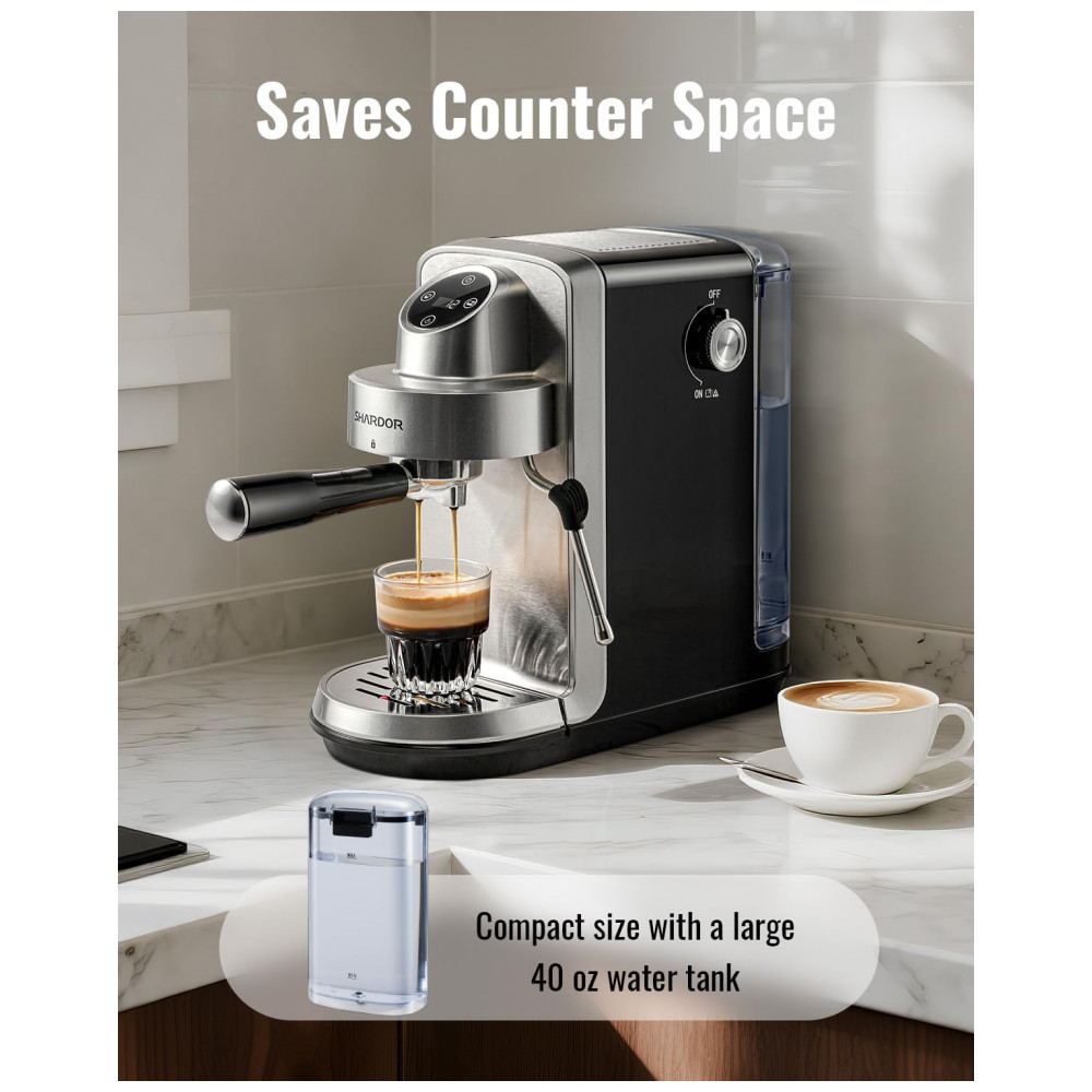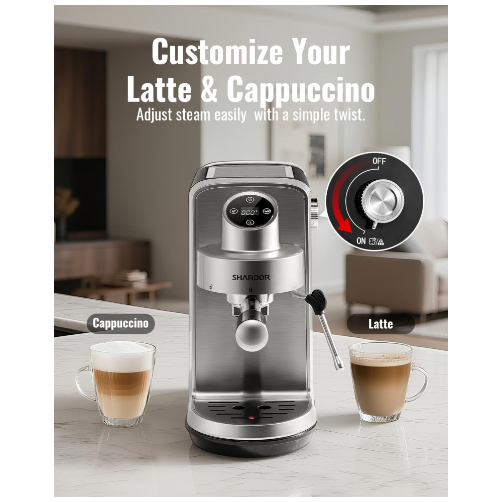 Máquina de Espresso 20 Bar SHARDOR Prata com Touchscreen e Vaporizador de Leite 118L 110V