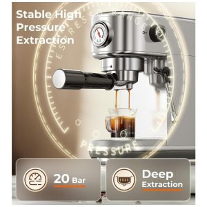 O controle de temperatura com sensor NTC garante precisão térmica em todos os ciclos, com estabilização rápida da água, evitando variações que poderiam prejudicar o sabor. O sistema de pré-aquecimento automático otimiza o equilíbrio entre corpo e acidez no espresso, enquanto a opção de extração manual permite personalizar o tempo de preparo e a intensidade — atendendo desde usuários iniciantes até entusiastas mais experientes.
