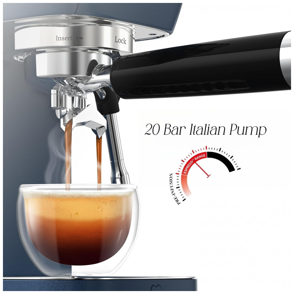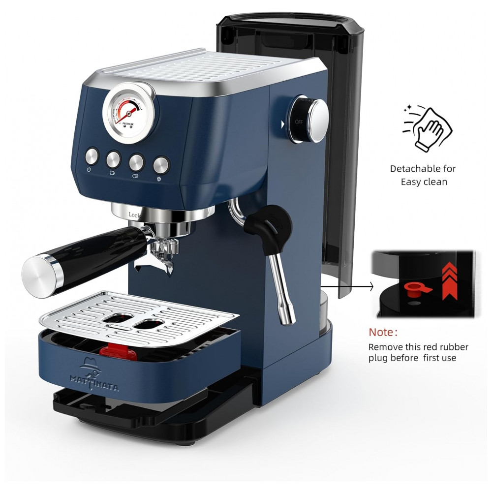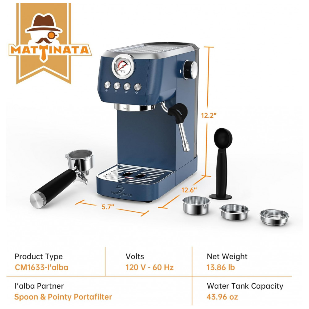 Máquina de Espresso 20 Bar Vaporizador Profissional Manômetro Colorido 145L MAttinata Inox Azul 110V