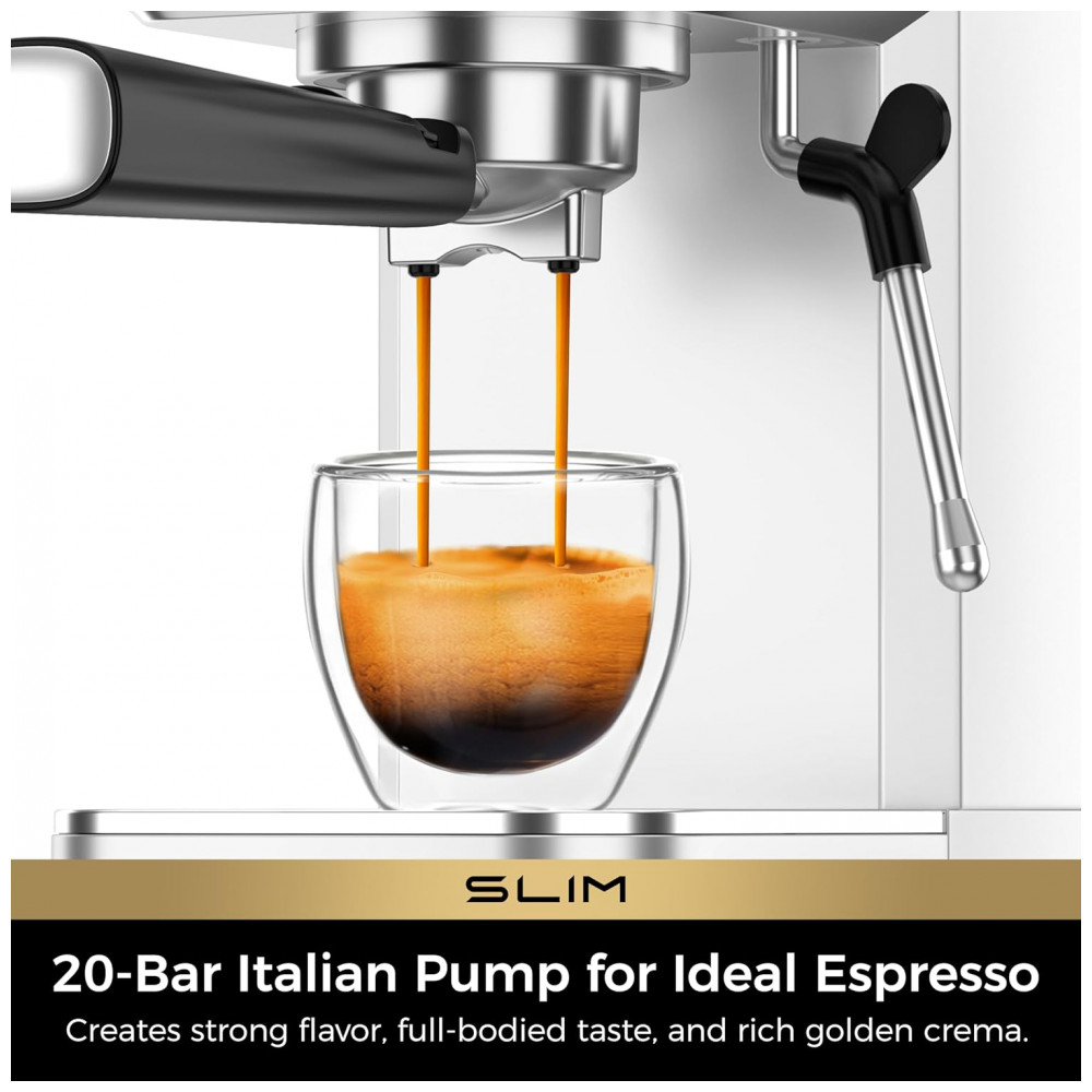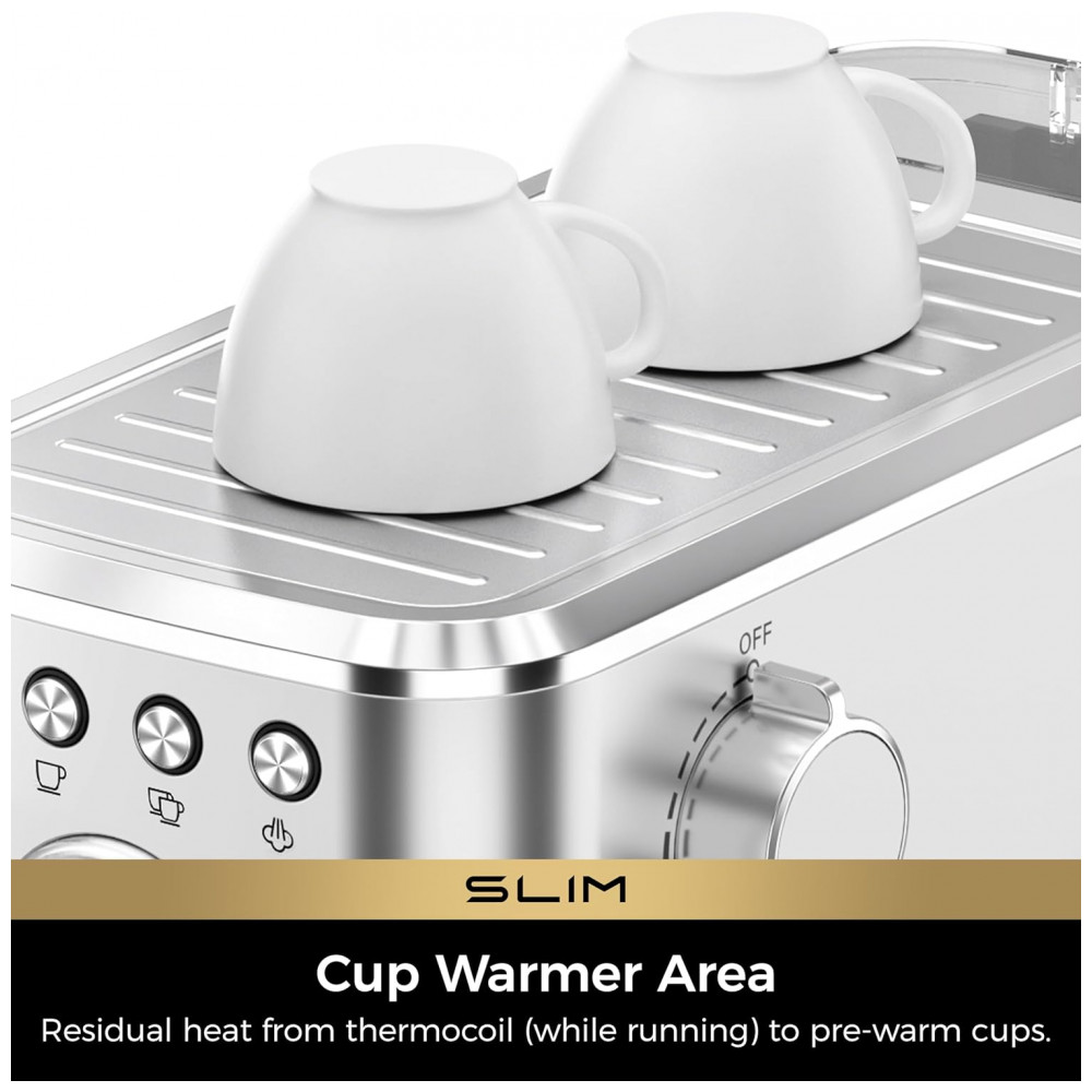 A máquina de espresso CHULUX Slim JH-C5010 alia desempenho profissional a um design ultracompacto e elegante, ideal para ambientes residenciais, escritórios ou pequenos estabelecimentos com espaço limitado. Seu sistema de bomba italiana de 20 bar e caldeira potente de 1350 W garante rápida pressurização e extração eficiente, entregando espressos densos, encorpados e com crema persistente em apenas 1 a 3 minutos após pré-aquecimento de 30 segundos.