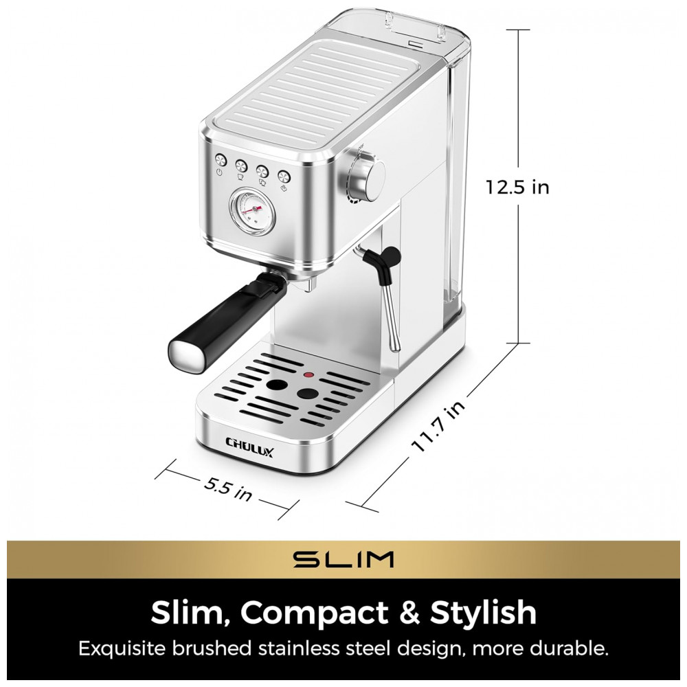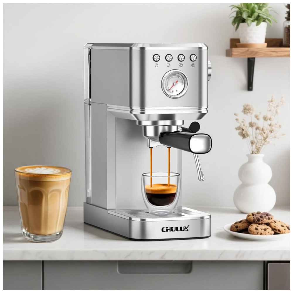 Máquina de Espresso 20 Bar Vaporizador Profissional Manômetro Compacta CHULUX Inox Prata 110V