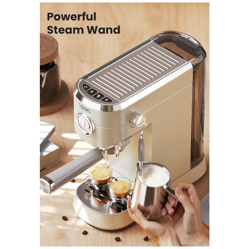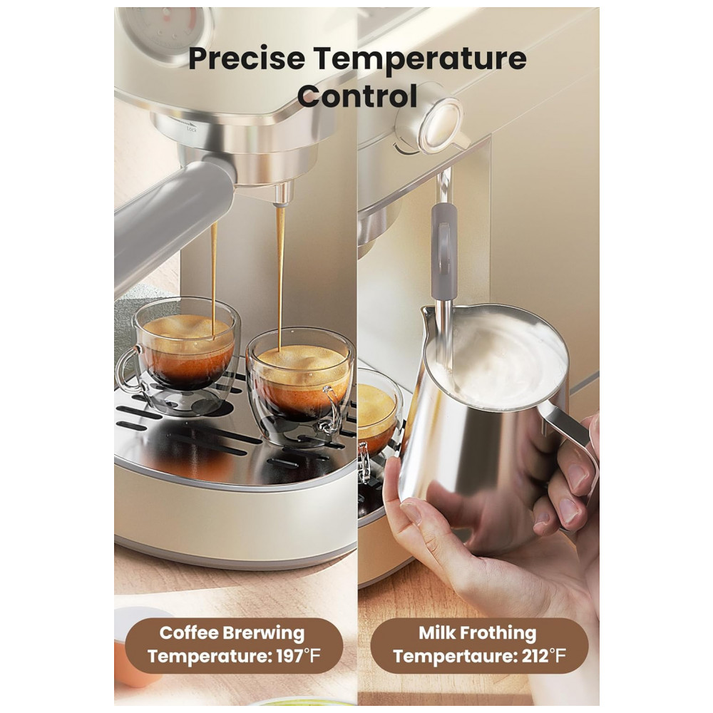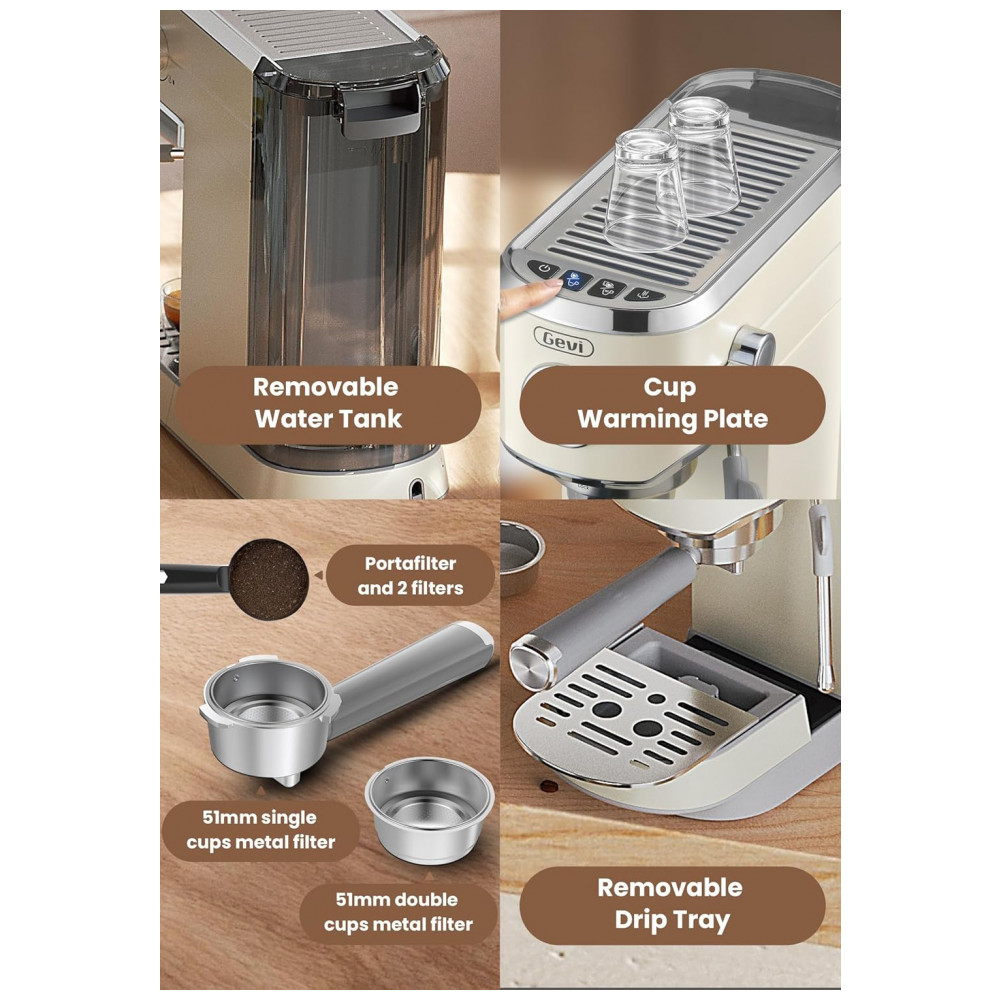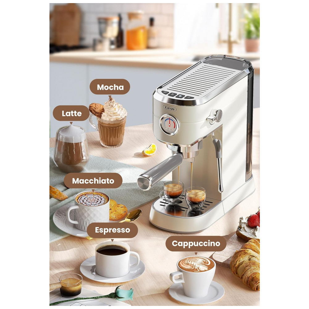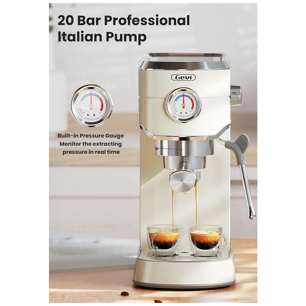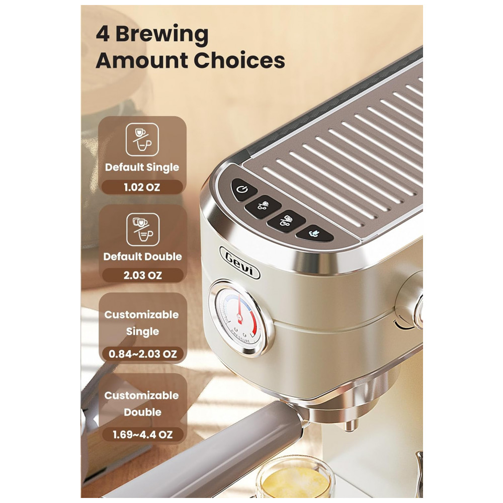 Máquina de Espresso Comercial 20 Bar Vaporizador Profissional Controle NTC Manômetro Gevi Inox Bege 110V