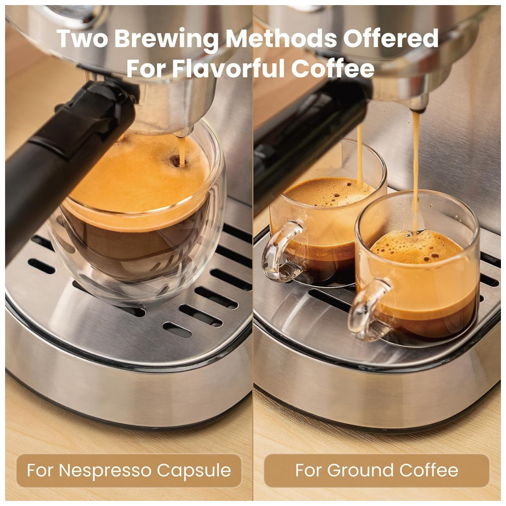 O sistema de pré-infusão automática prepara o café de forma homogênea antes da extração principal, destacando aromas e suavizando o paladar. O vaporizador de leite profissional proporciona vapor potente para microespuma cremosa—ideal para cappuccinos, lattes e latte art. O manômetro analógico frontal permite monitoramento em tempo real da pressão de extração, otimizando ajustes conforme diferentes estilos e receitas, enquanto a função de dose programável (simples, dupla ou manual) amplia a versatilidade na operação.