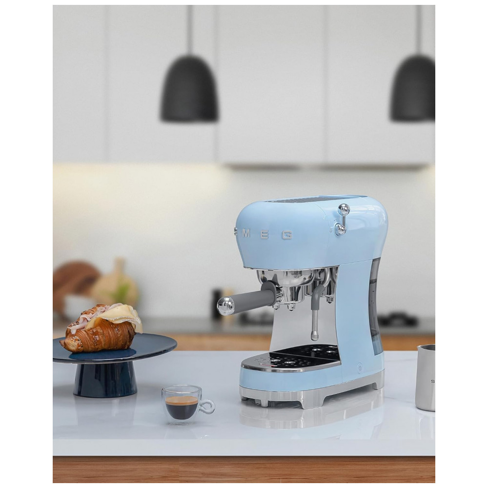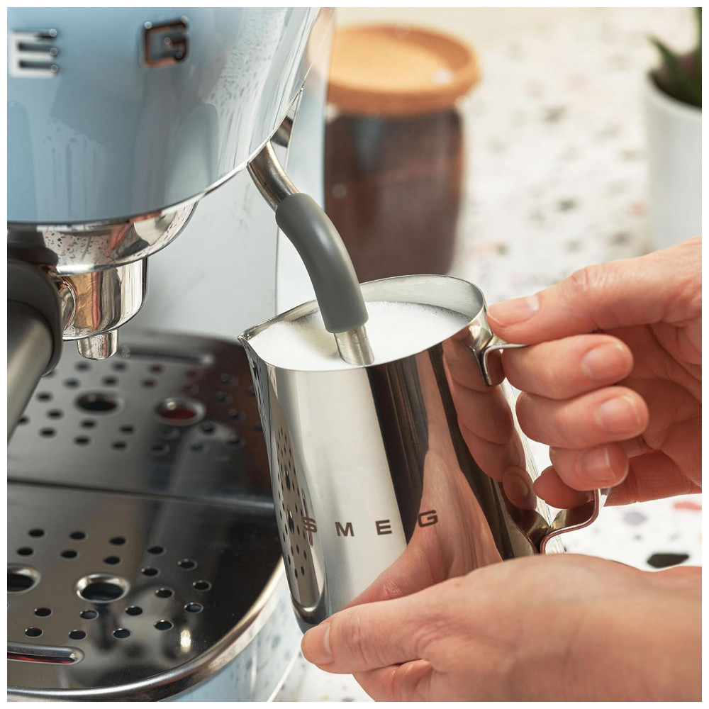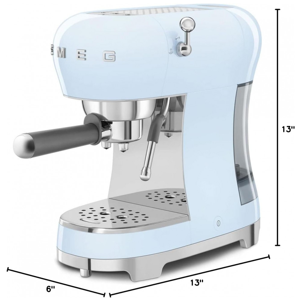 Máquina de espresso manual Smeg azul pastel retrô com bomba 15 bar termobloco vaporizador de leite e reservatório 110V