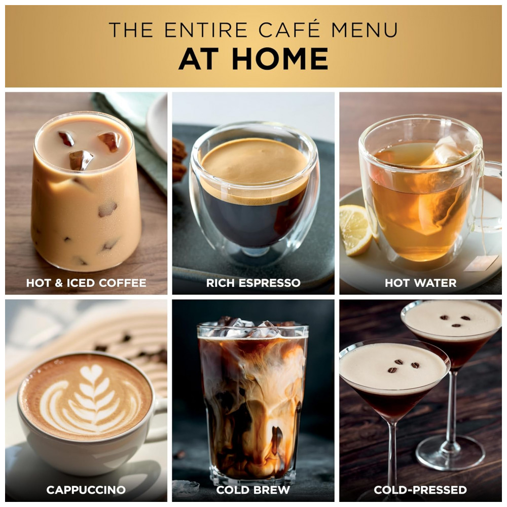Esta máquina de espresso multifuncional Ninja ES701 integra funções de espresso, drip coffee, cold brew e dispensador de água quente em um único equipamento. Projetada para preparos precisos, oferece 5 estilos de espresso (single, double, quad shot, ristretto e lungo), 3 estilos de drip coffee (clássico, rico ou over ice), 2 estilos de cold brew (cold pressed espresso ou cold brew coffee) e sistema independente de água quente para americanos, chás ou chocolate quente. Capacidade de reservatório de 68 oz (cerca de 2 litros) atende múltiplos usos diários, com tecnologia Barista Assist para recomendações de moagem, dosagem por peso e ajustes automáticos de temperatura e pressão.