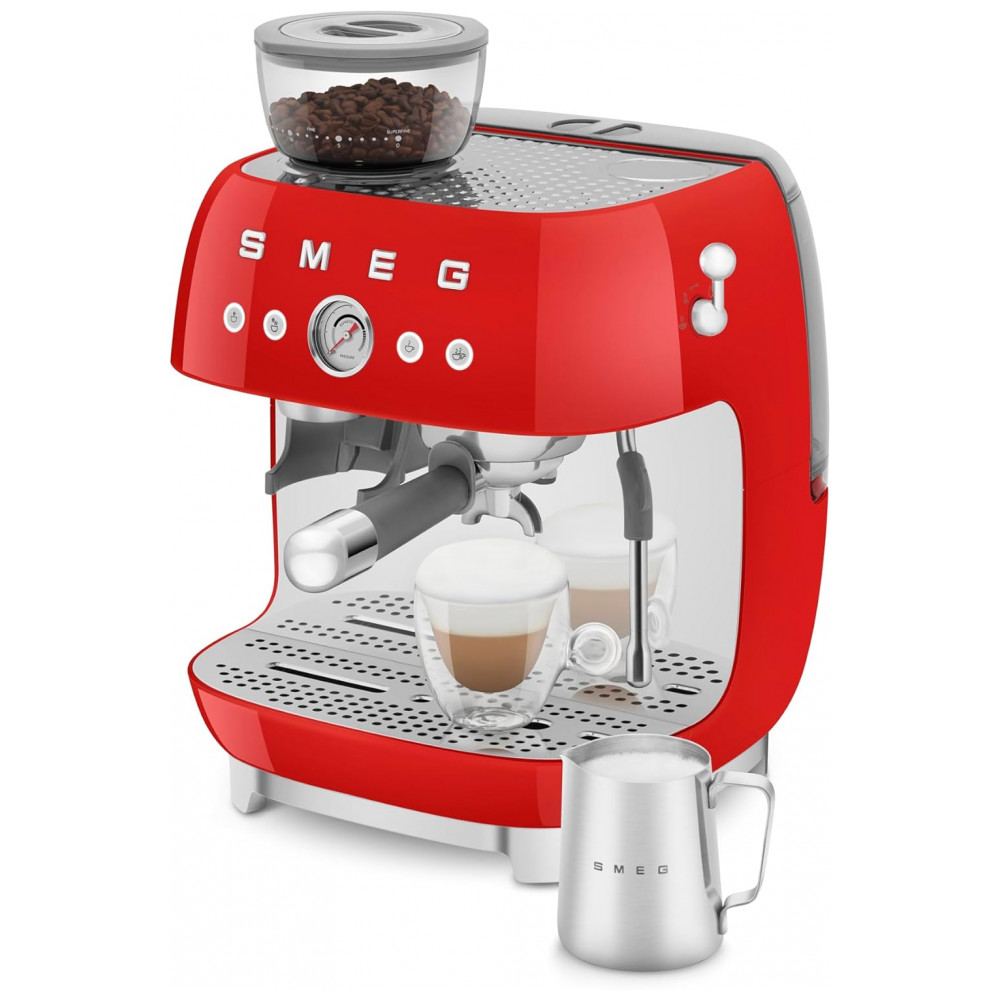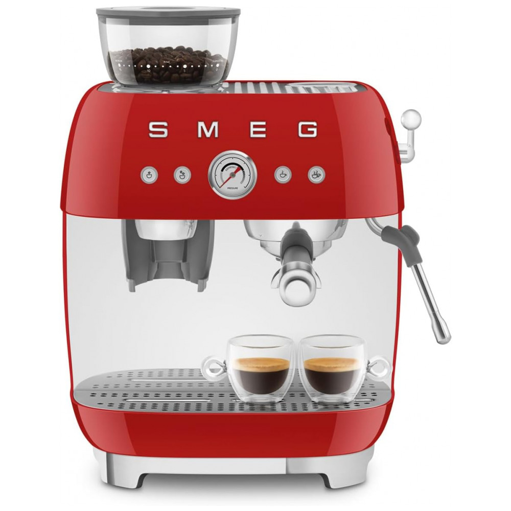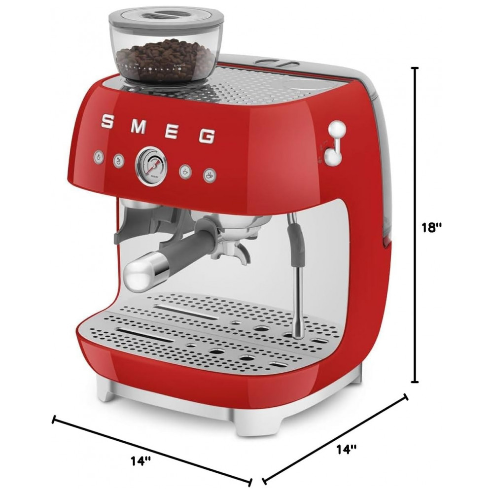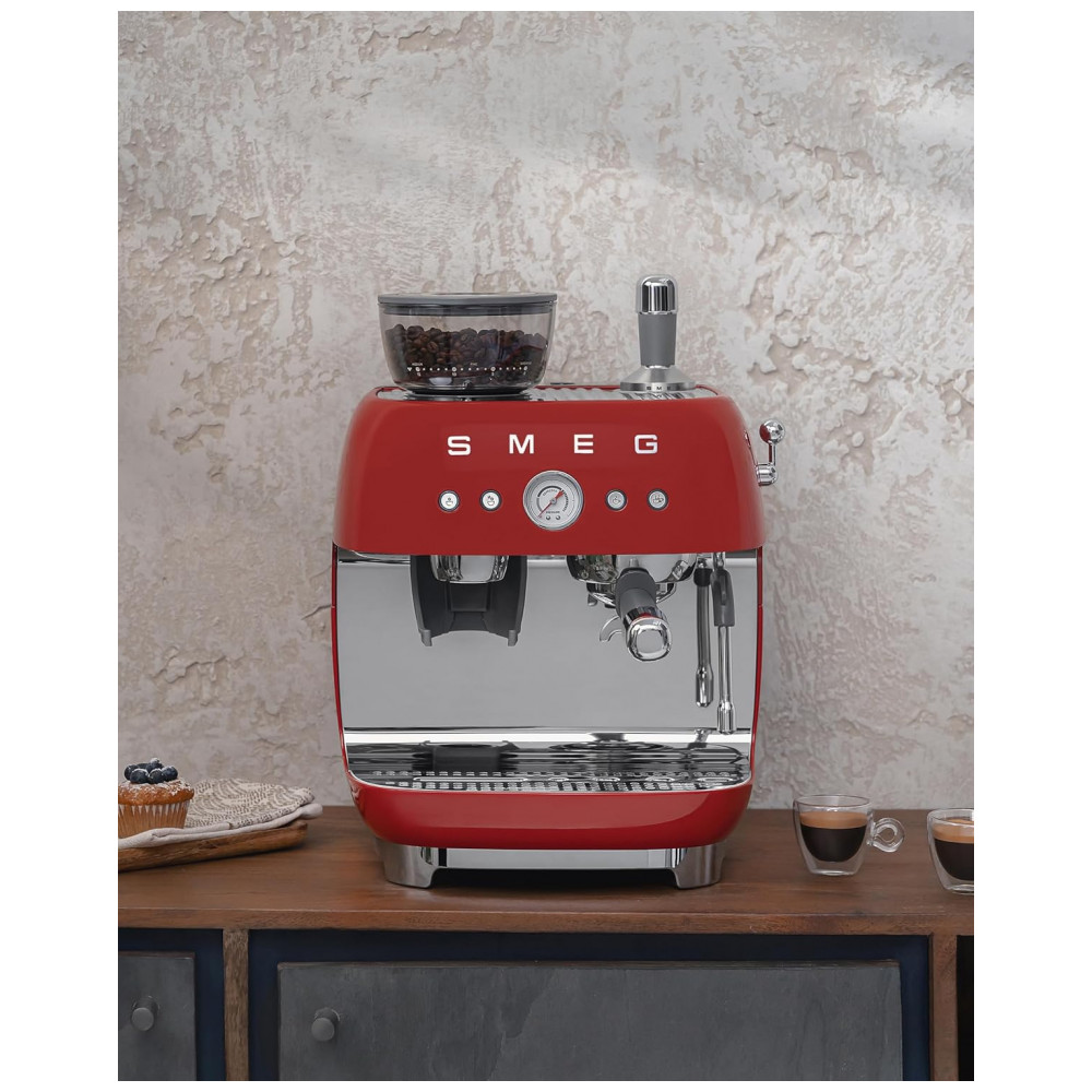 Máquina de espresso semi‑automática Smeg vermelho retrô com moedor integrado duplo termobloco porta‑filtro 58 mm e reservatório 24L 110V
