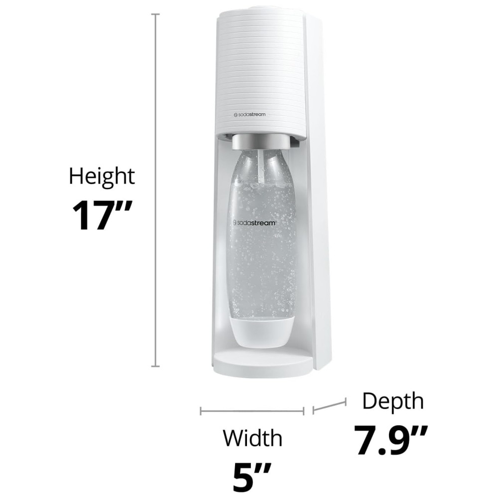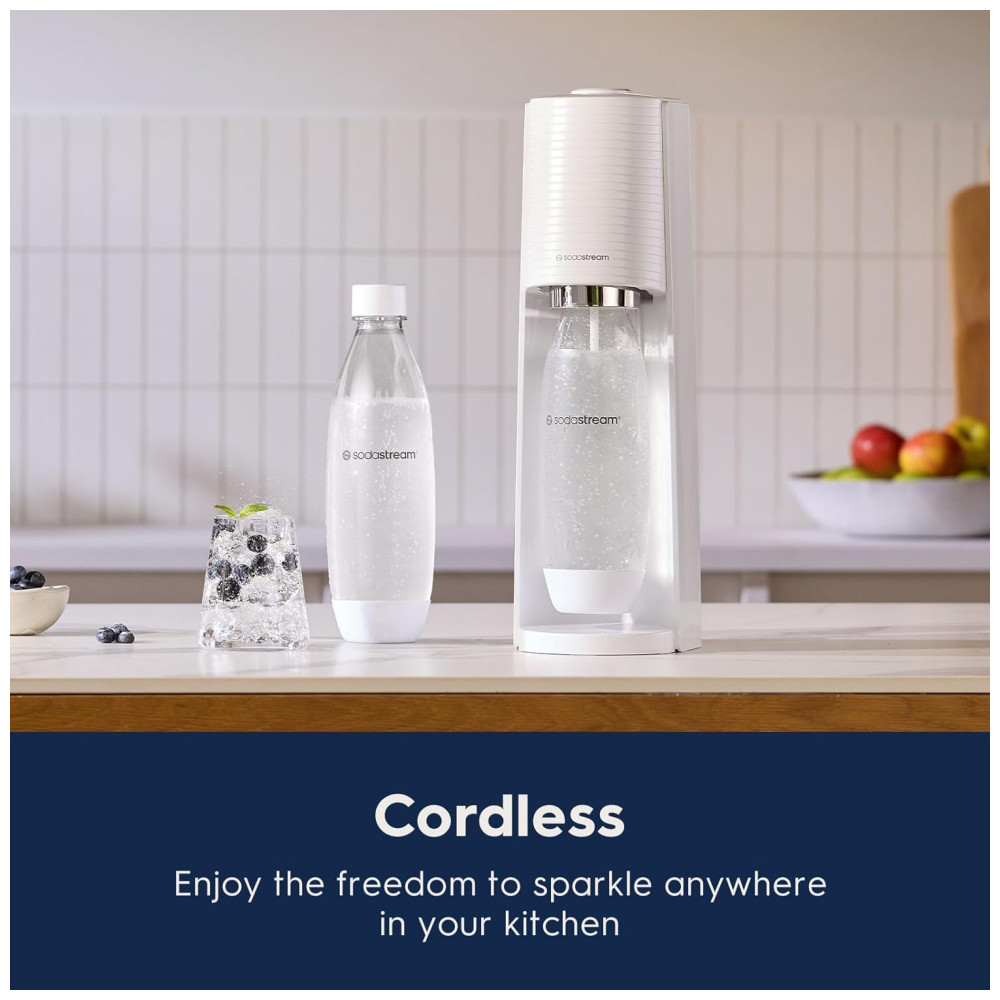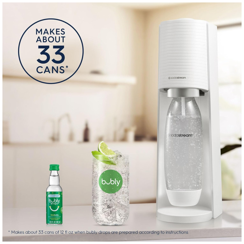 Nome do Modelo: Máquina de Fazer Água com Gás SodaStream Terra (Branca) com CO2, Garrafa DWS e Bubly Drop,