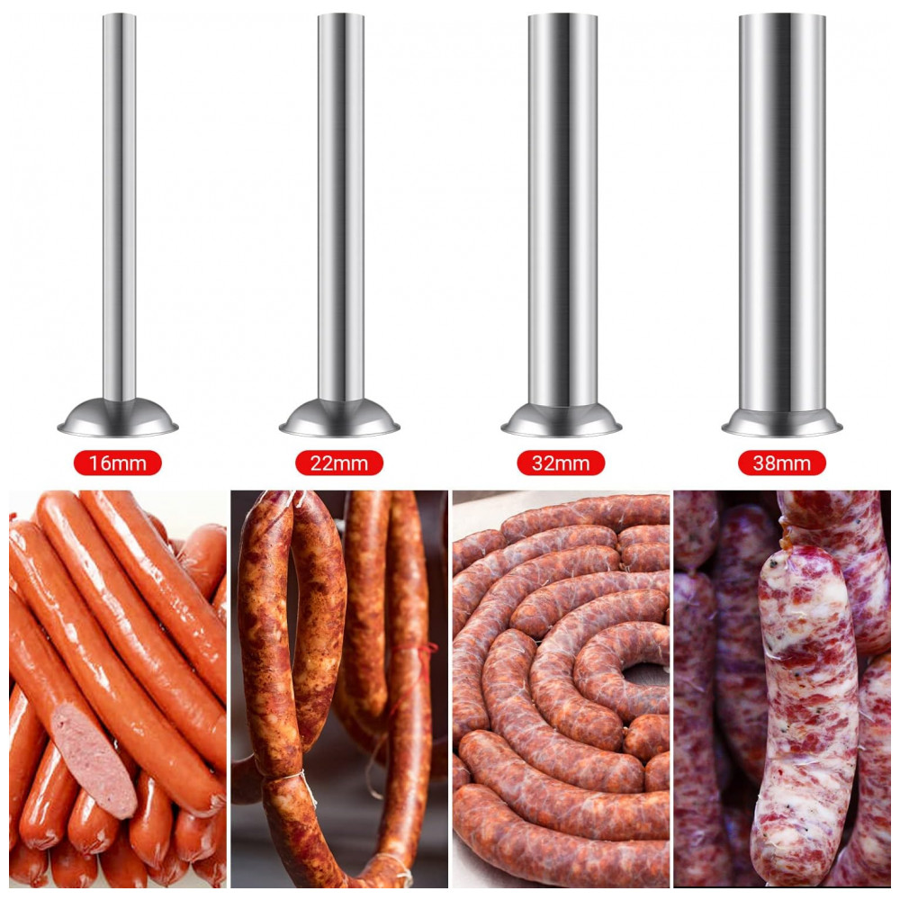 Máquina de Fazer Linguiças em Aço Inoxidável 304 5 Litros 2 Velocidades 4 Tubos de Enchimento – Prata