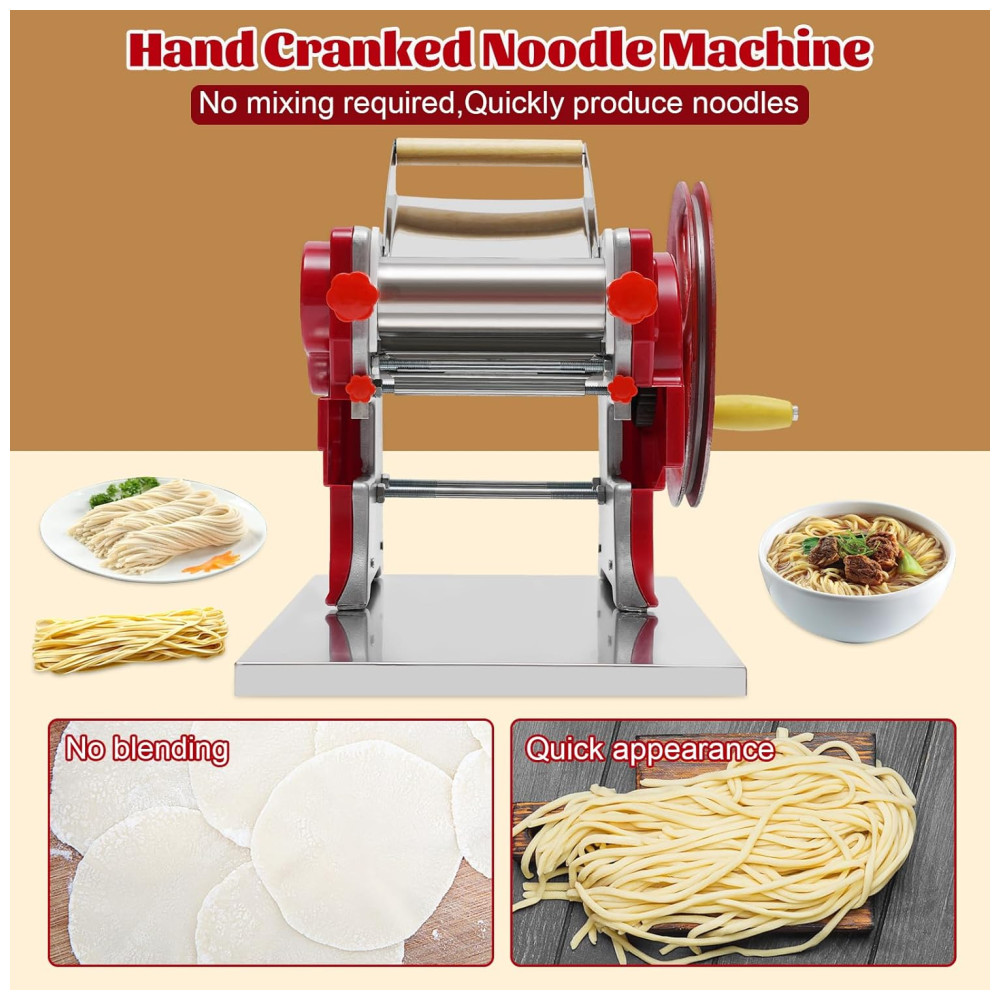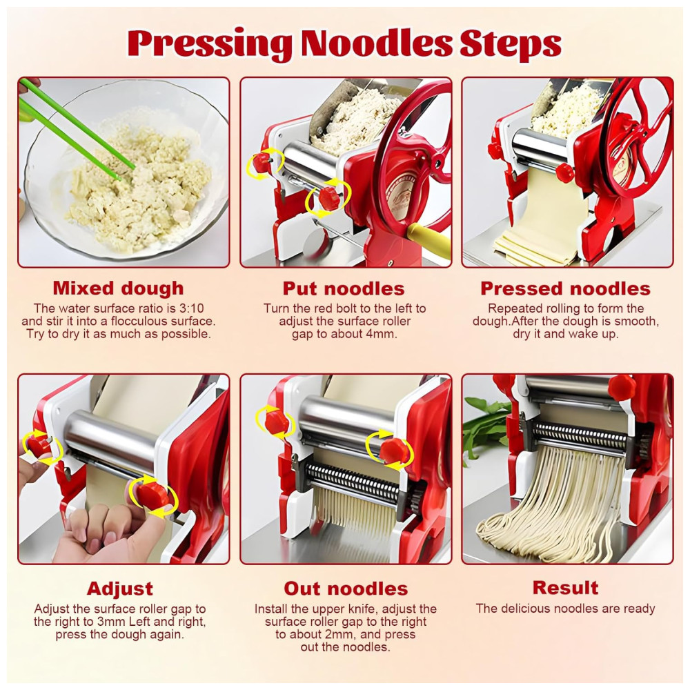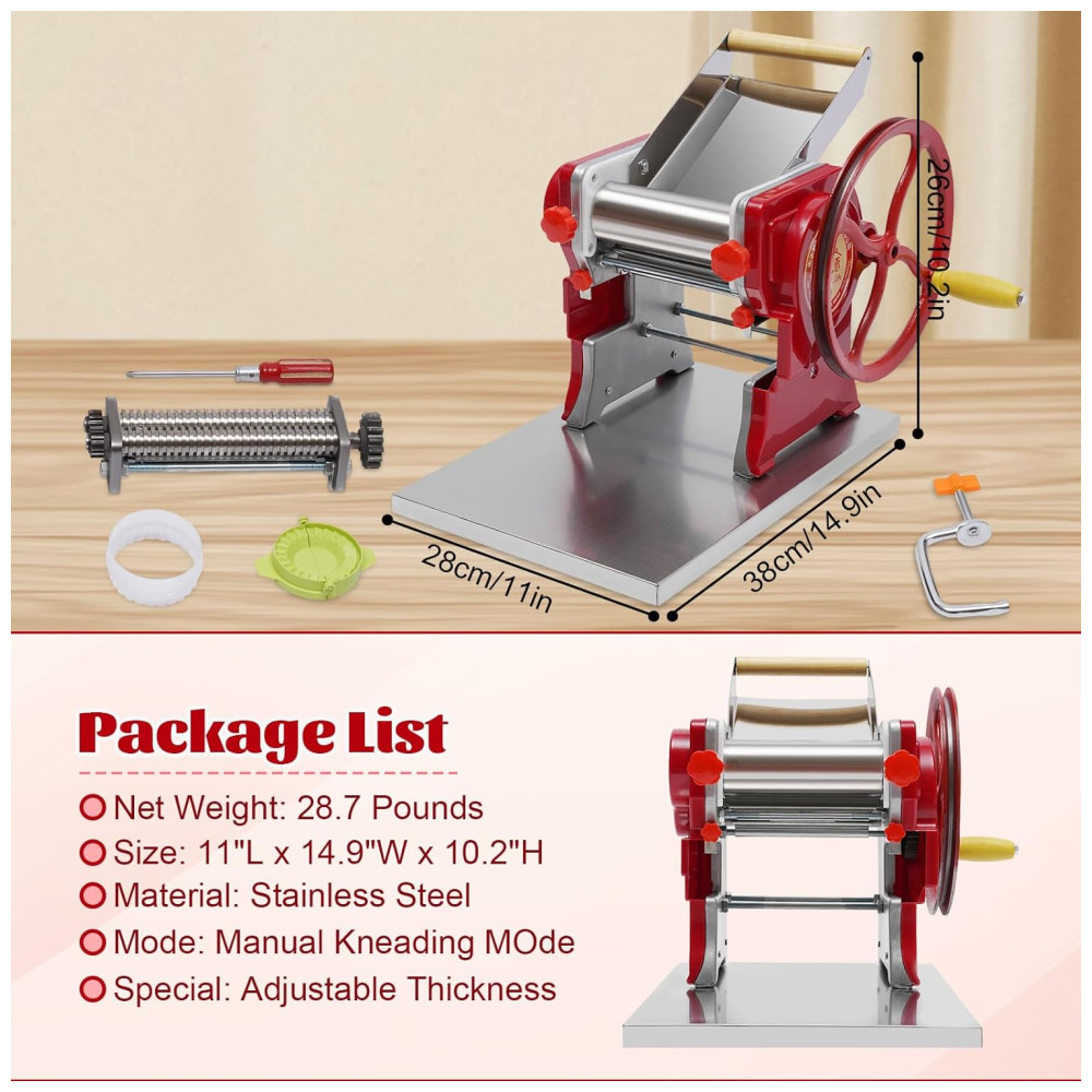 Máquina de Massa Manual Comercial Treliamd em Aço Inoxidável Ajuste de Espessura Cortador para Macarrão Ravioli e Lasanha Vermelho
