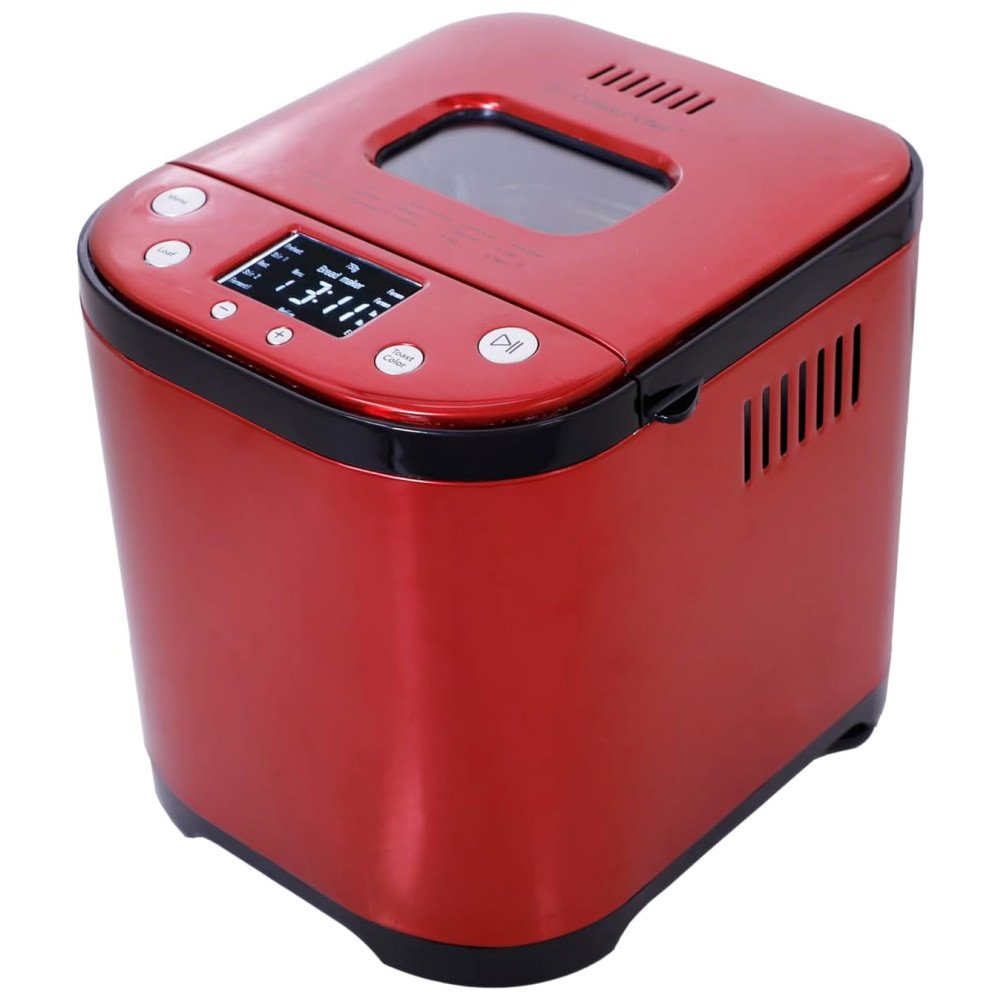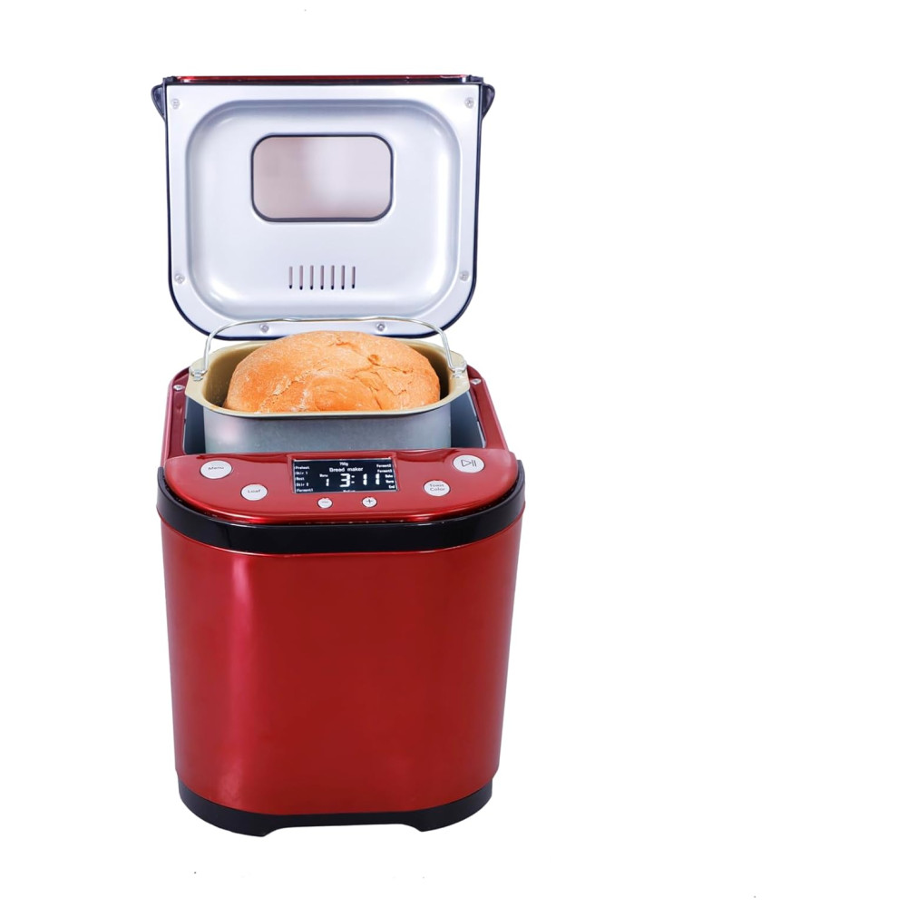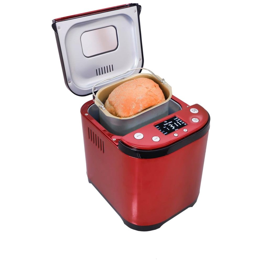 Cor Vermelho Aço Inoxidável CARACTERÍSTICAS DO PRODUTO GRANDE VISOR LCD DE 2,8 E JANELA DE VISUALIZAÇÃO 15 PROGRAMAS DE COZEDURA DIGITAL AUTOMÁTICO TEMPORIZADOR PROGRAMÁVEL DE 15 HORAS FUNÇÃO DE MANTER QUENTE DE 60 MINUTOS BOTÕES DE LED ILUMINADOS GRANDE JANELA DE VISUALIZAÇÃO TAMANHO DE PÃO DE ATÉ 2 LBS CONTROLE DE CROSTA AJUSTÁVEL CLARO, MÉDIO, ESCURO PÁ DE Amassar REMOVÍVEL E TAÇA ANTI ADERENTE PARA FÁCIL LIMPEZA AÇO INOX DISPONÍVEL EM ALGUMAS CORES REVESTIMENTO RESISTENTE A IMPRESSÃO DIGITAIS EM AÇO INOX VEM COM GANCHO DE PÃO, COPO DE MEDIÇÃO E COLHER DE MEDIÇÃO TENSÃO 110V 240V CONSUMO DE ENERGIA 710W