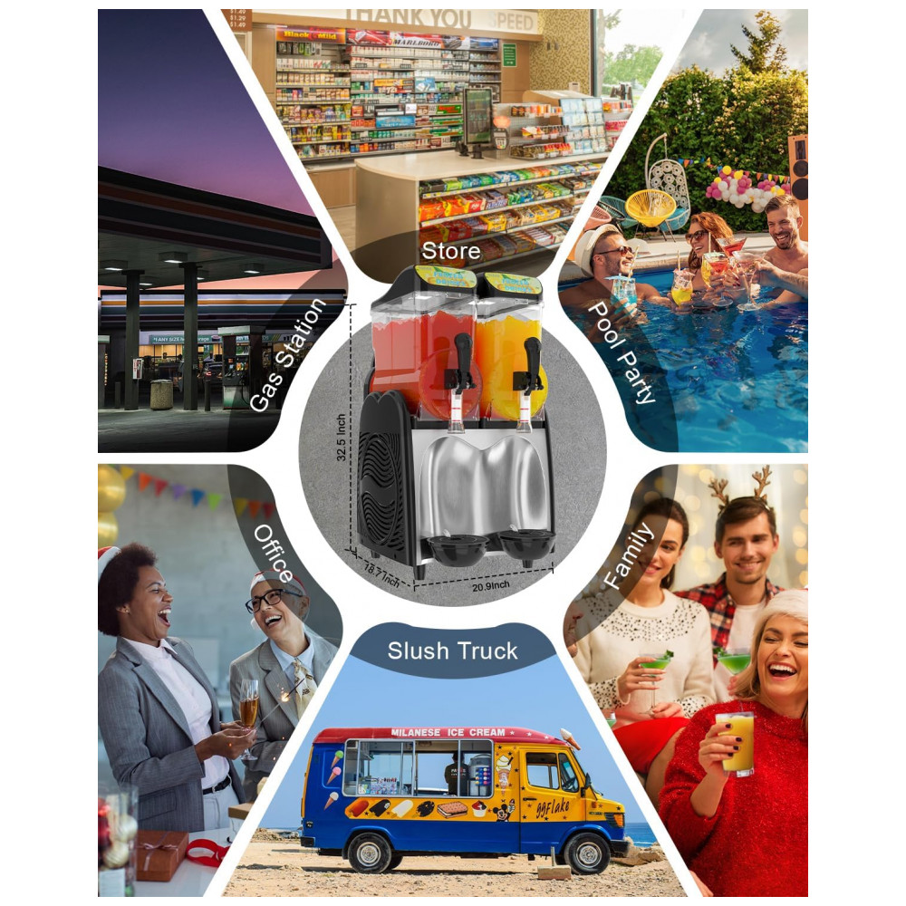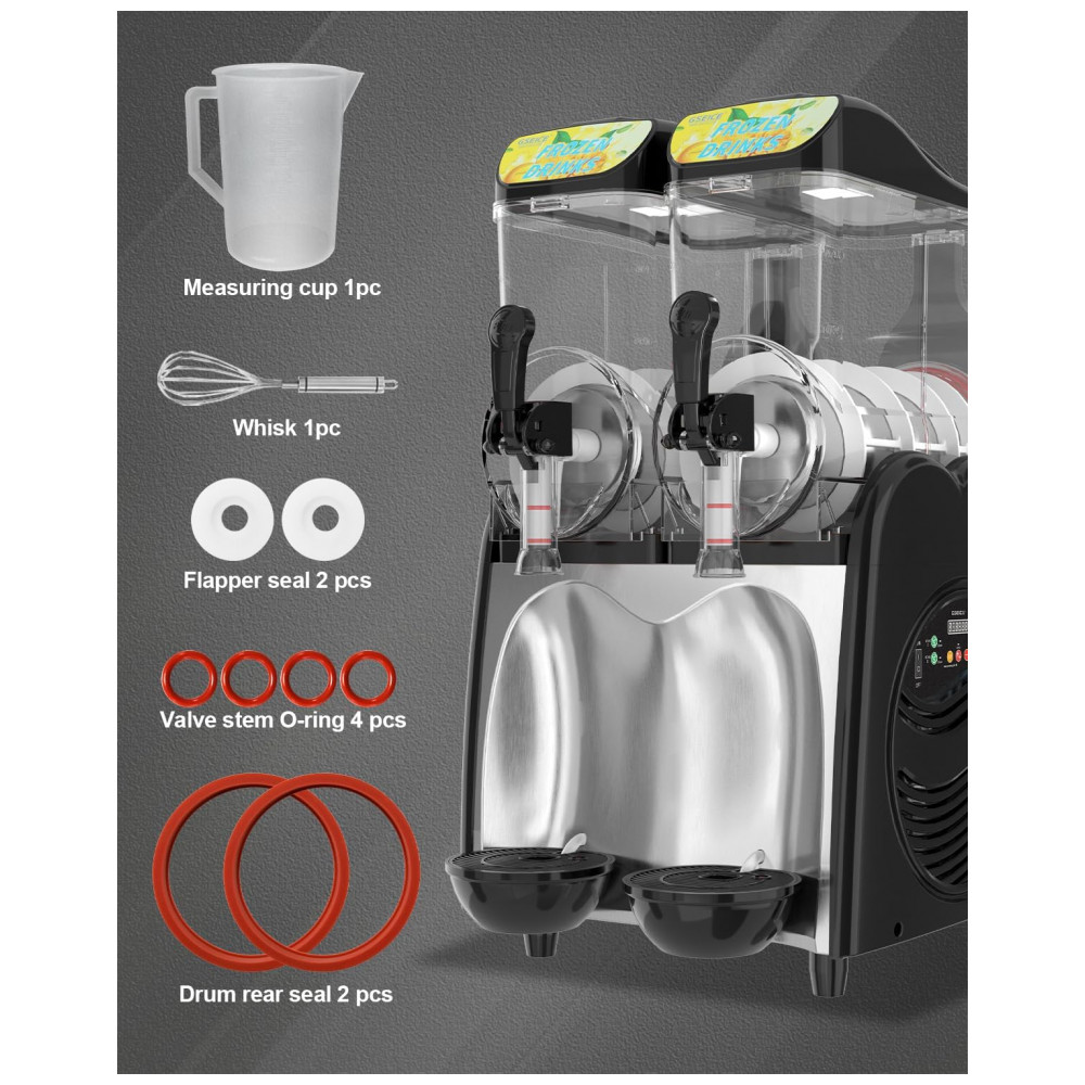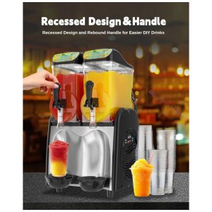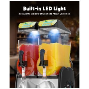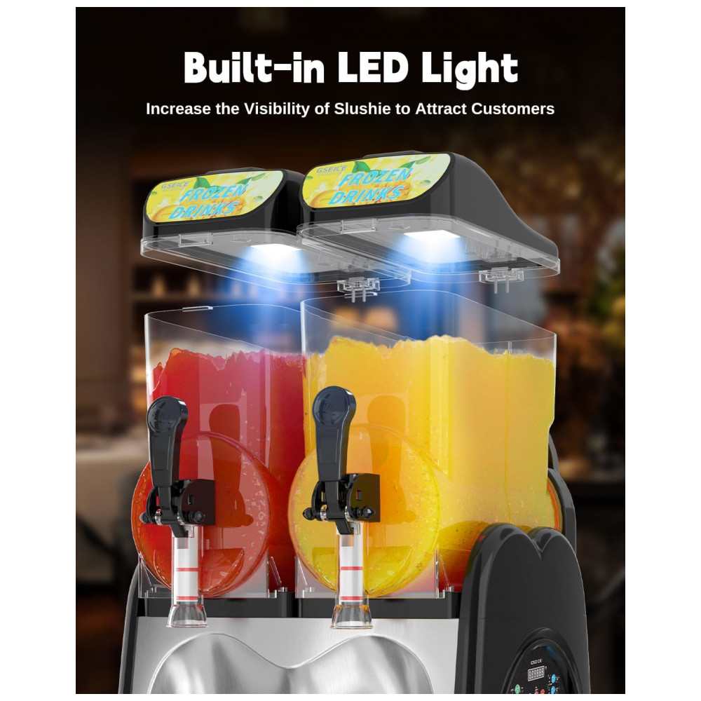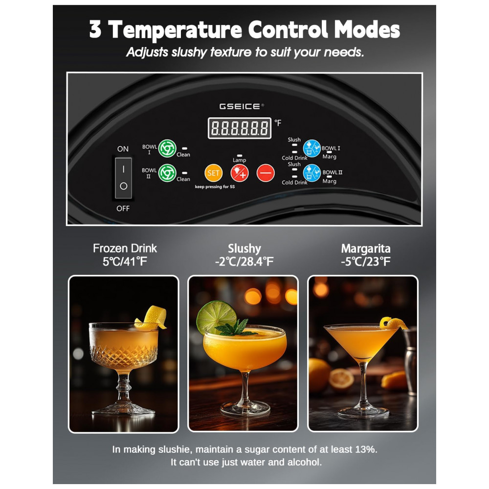 A Máquina de Frozen da GSEICE é a escolha ideal para preparar rapidamente deliciosos frozen em reuniões familiares, festas ou no seu negócio. Com dois tanques de 15 litros cada, você pode criar uma variedade de bebidas congeladas, como frozen margaritas e coquetéis. Sua operação intuitiva e fácil limpeza tornam-na acessível a todos. Feita com aço inoxidável de alta qualidade, possui design moderno com LEDs embutidos, aumentando a visibilidade dos produtos. Adquira já a sua e eleve o nível das suas bebidas geladas!
