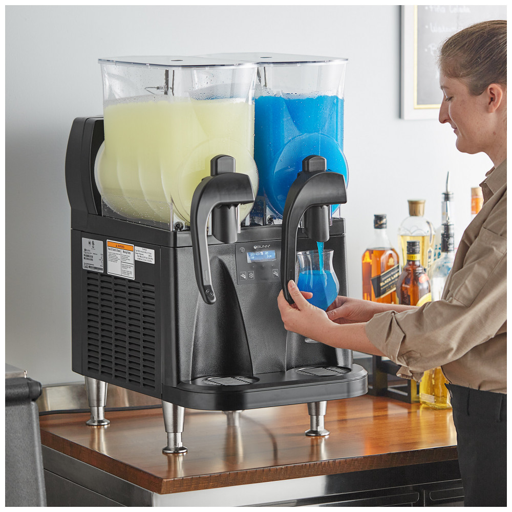 Ideal para stands de concessão, lojas de conveniência ou sorveterias. Com duas cubas de 11,36 litros para servir duas bebidas simultaneamente. Compatível com BUNNlink para comunicação remota. Recurso de descongelamento rápido garante a qualidade das bebidas. O recurso de captura de vazamentos ajuda a reduzir custos de serviço e tempo de limpeza. Aprimore o visual de seu balcão ou bar com esta elegante e confiável Máquina de Frozen Bunn 58000.0012 Ultra NX preta dupla de 11,36 litros com tampas planas. Esta máquina de frozen é a adição perfeita para o seu stand de concessão, loja de conveniência ou sorveteria. Possui recurso de descongelamento rápido para garantir a qualidade das bebidas, maximizando o tempo de funcionamento. Com um sistema aprimorado de acionamento e vedação do extrator, além da tecnologia patenteada de monitoramento de bebidas e design de extrator reversível da Bunn, esta unidade possui um desempenho duradouro e confiável em que você pode confiar para bebidas congeladas consistentes e saborosas. Funcional e compacta, esta máquina de frozen possui 2 grandes compartimentos de 11,36 litros para capacidade ideal de refrigeração e servimento, embalados em uma pegada de 42,22 cm de largura. Além disso, você pode servir várias opções de bebidas ao mesmo tempo! Com um alerta de baixo produto, esta máquina ajuda a minimizar a falta de produto. É fácil se comunicar remotamente com seu equipamento para habilitar decisões com base em dados com a compatibilidade BUNNlink. Esta unidade também possui conectividade USB para fácil atualização de software e downloads. Com um exterior preto atraente, a construção durável desta máquina de bebidas congeladas oferece longevidade e facilidade de limpeza ideais. As alças do dispensador estendidas permitem uma operação fácil, e o novo recurso de captura de vazamentos ajuda a reduzir os custos de serviço e o tempo de limpeza, enquanto a interface do usuário comunica a necessidade de limpeza e manutenção. Também oferece guias de programação, limpeza e manutenção preventiva simples. Esta unidade requer uma conexão elétrica de 110V para operação.
