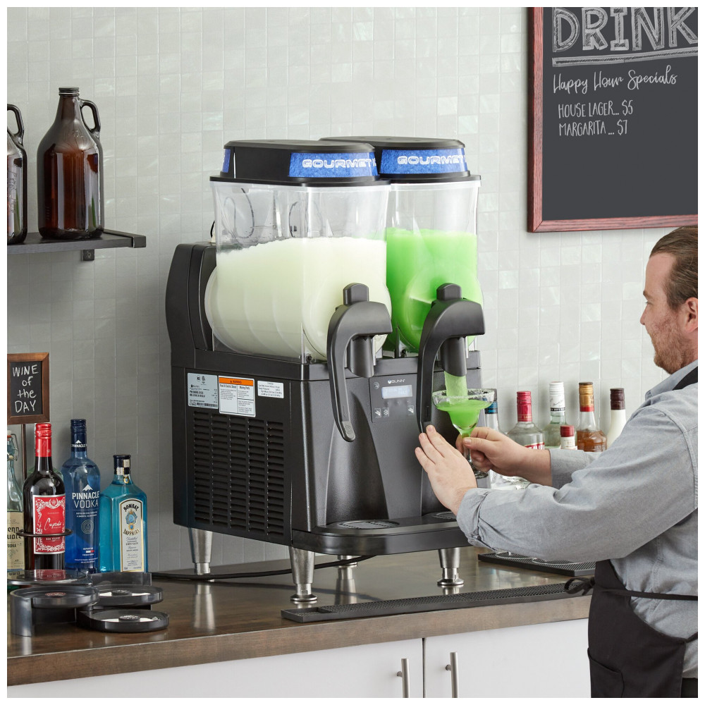 Aprimore seu espaço com a elegante e confiável Máquina de Frozen Bunn 58000.0013 Ultra NX. Esta máquina de frozen é perfeita para seu estabelecimento, seja ele um quiosque, loja de conveniência ou sorveteria. Possui recurso de descongelamento rápido para garantir a qualidade das bebidas, maximizando o tempo de funcionamento. Com sistema de acionamento do eixo aprimorado, tecnologia patenteada de monitoramento de bebidas da Bunn e design de eixo reverso, esta unidade oferece um desempenho duradouro e confiável para bebidas congeladas consistentes e saborosas. Com 2 grandes bacias de 11,36 litros para resfriamento e capacidade de servir otimizados em um design compacto, você pode atender várias opções de bebidas ao mesmo tempo. A compatibilidade com BUNNlink permite comunicação remota, enquanto a conectividade USB permite atualizações e downloads de software fáceis. Esta máquina ajuda a reduzir a mão de obra com sua interface de abastecimento automático de líquidos. As luzes LED nas tampas das bacias aumentam a visibilidade, e a construção durável oferece longevidade e facilidade de limpeza. Uma característica de captura de vazamentos e a interface do usuário comunicam a necessidade de limpeza e manutenção. Com programação simples e guias de limpeza e manutenção preventiva, esta unidade é alimentada por uma conexão elétrica de 110V.