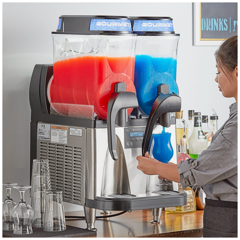 Aprimore o visual do seu balcão com a elegante e confiável Máquina de Frozen Bunn 58000.0015 Ultra NX. Com capacidade para servir duas bebidas simultaneamente em tigelas de 11,36 litros, este equipamento é perfeito para stands de concessão, lojas de conveniência ou sorveterias. Possui função de descongelamento rápido para preservar a qualidade das bebidas e maximizar o tempo de funcionamento. Com sistema avançado de acionamento do agitador, tecnologia de monitoramento de bebidas patenteada pela Bunn e design de agitador reversível, esta unidade oferece alto desempenho e confiabilidade duradouros. Com 2 grandes tigelas de 11,36 litros, esta máquina compacta oferece capacidade ideal de resfriamento e servir. Além disso, é possível servir várias opções de bebidas ao mesmo tempo. Compatível com BUNNlink para comunicação remota e conectividade USB para atualizações de software fáceis. A parte externa preta e de aço inoxidável é durável, proporcionando longa vida útil e facilidade de limpeza. Além disso, apresenta alças de dispensador estendidas para facilitar a operação e uma nova função de captura de vazamento para reduzir custos de serviço e tempo de limpeza. Requer conexão elétrica de 110V para operação.