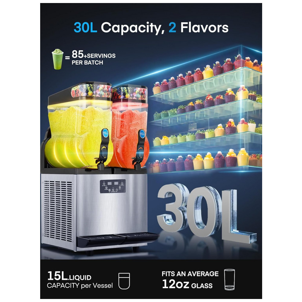 Máquina de Frozen Comercial 30 Litros Aço Inoxidável Máquina de Margarita e Smoothie Máquina de Slushie 25 Minutos para Servir FOHERE
