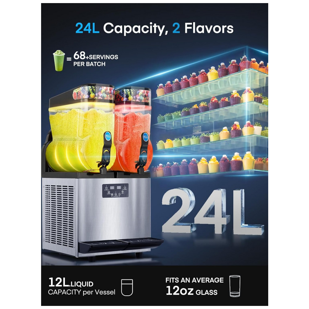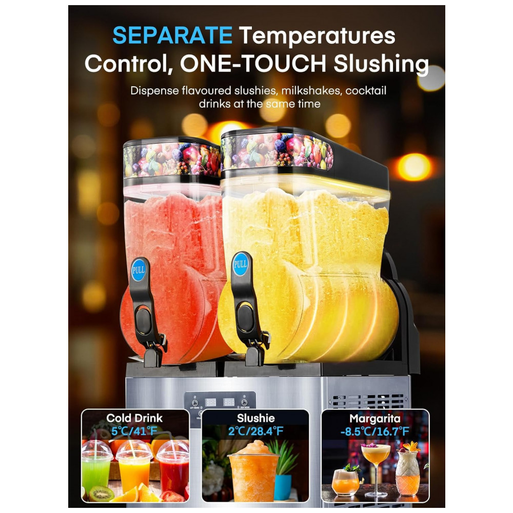 Máquina de Frozen Commercial Slushy 24L Aço Inoxidável 15L x 2 para Margaritas e Smoothies 25 Minutos para ServirFOHERE