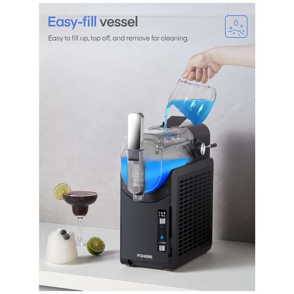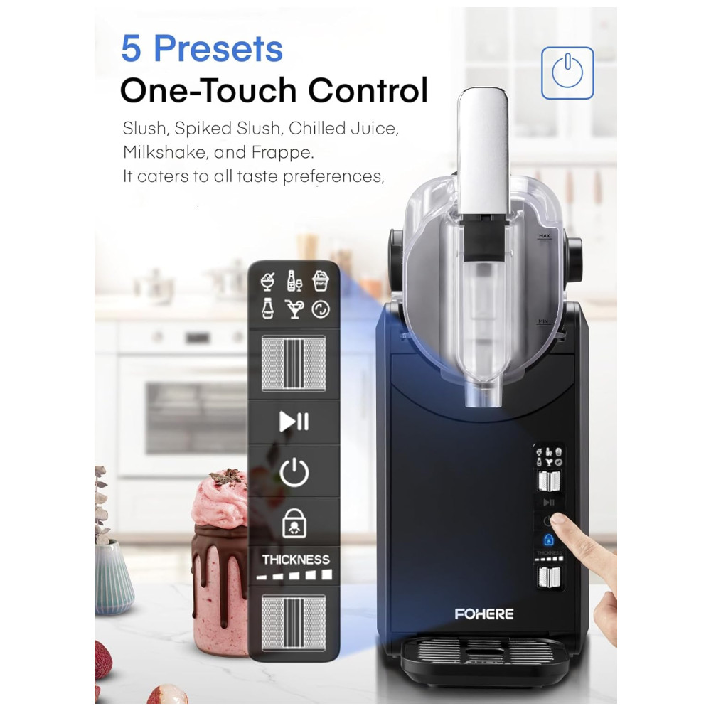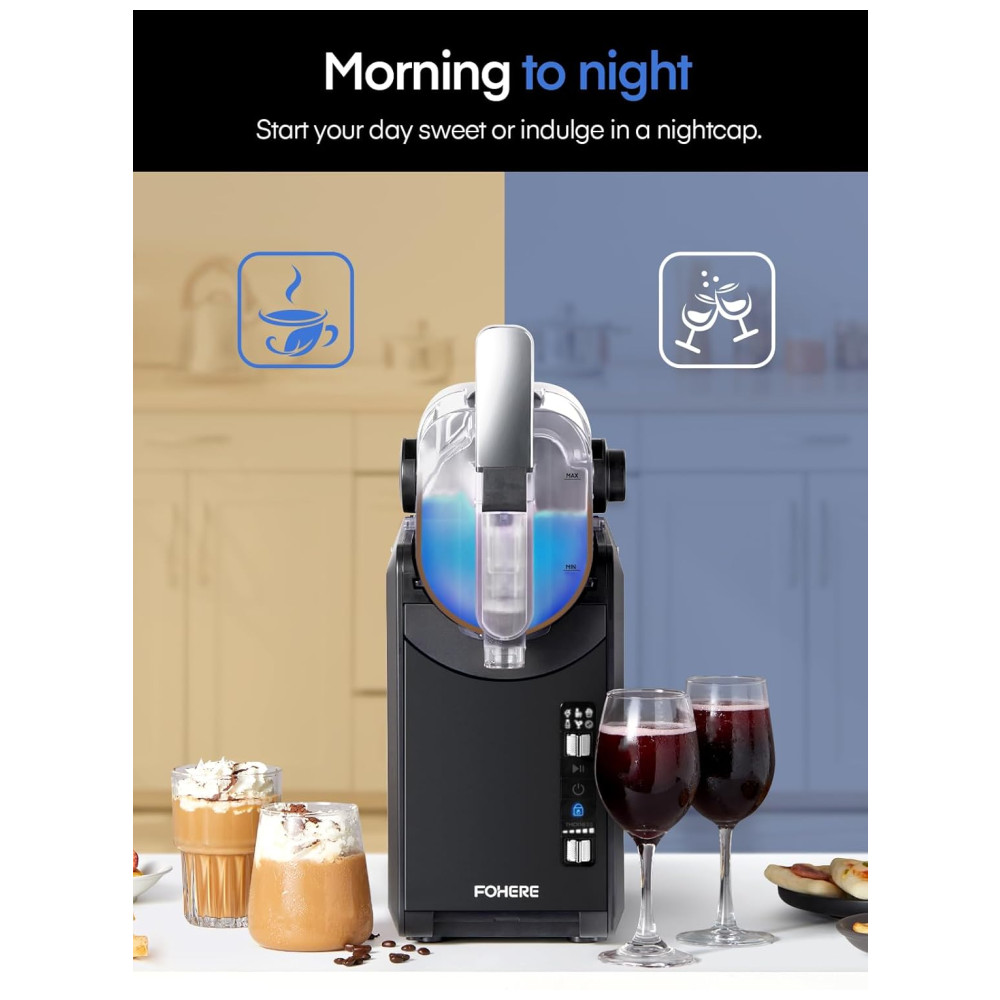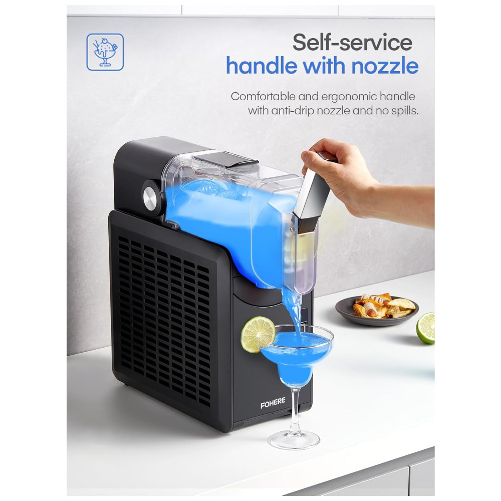 Desfrute de deliciosas bebidas frozen em casa com a Máquina de Frozen FOHERE. Graças à Tecnologia de Congelamento Rápido, essa máquina proporciona a textura perfeita sem diluir. Com 5 configurações pré-programadas, preparar slushies, margaritas, milkshakes e frappés é simples e rápido. Mantenha suas bebidas frescas por até 12 horas. Com capacidade, dispensa facilmente até oito porções. Compacta, fácil de limpar e segura com travas de proteção infantil. Experimente receitas sem açúcar adicionado e desfrute de bebidas refrescantes em minutos!