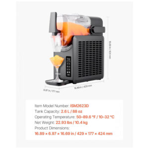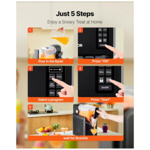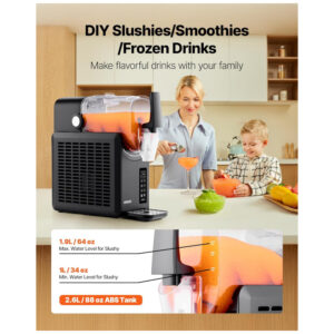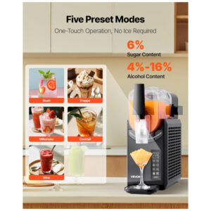 Desfrute de deliciosas bebidas congeladas em casa com a Máquina de Frozen VEVOR! Esta máquina oferece 5 programas pré-definidos para preparar facilmente milkshakes, margaritas, cocktails, café gelado e outras bebidas refrescantes. Com capacidade de 2,6 litros, isolamento de 12 horas e 5 níveis de textura, essa máquina é versátil e fácil de operar. O poderoso compressor permite preparar bebidas geladas em pouco tempo, com lâminas rotativas que garantem uma textura suave. Além disso, possui modo de autolimpeza para uma manutenção fácil e conveniente. Aproveite a praticidade de ter sua própria máquina de frozen em casa!