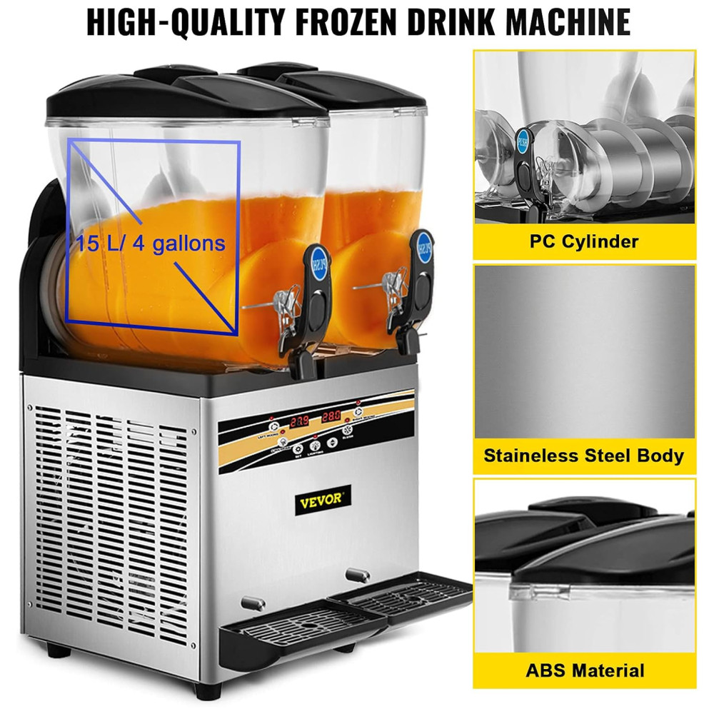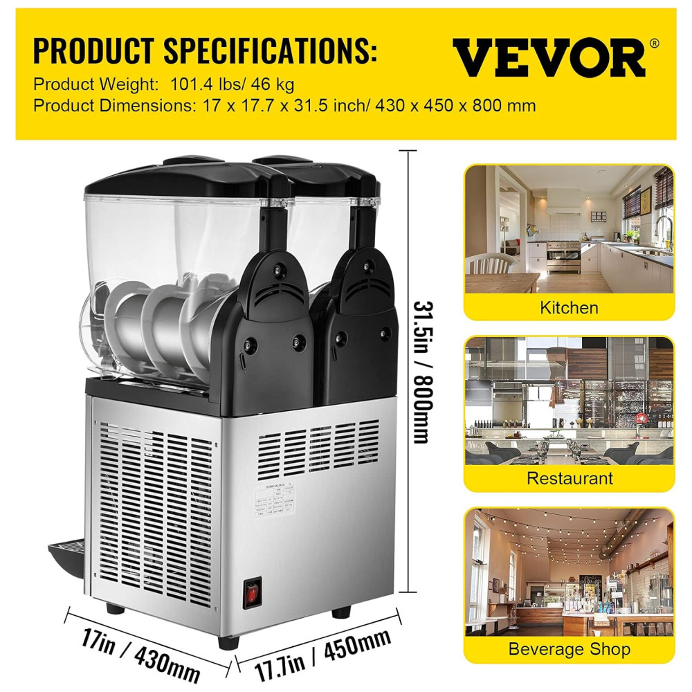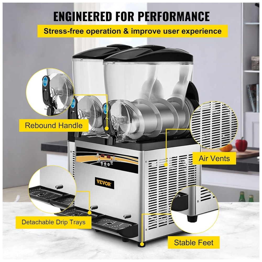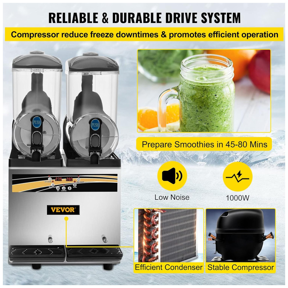 Máquina de Frozen VEVOR 30 Litros Duplo Tanque em Aço Inox Ideal para Estabelecimentos Comerciais e Uso Profissional