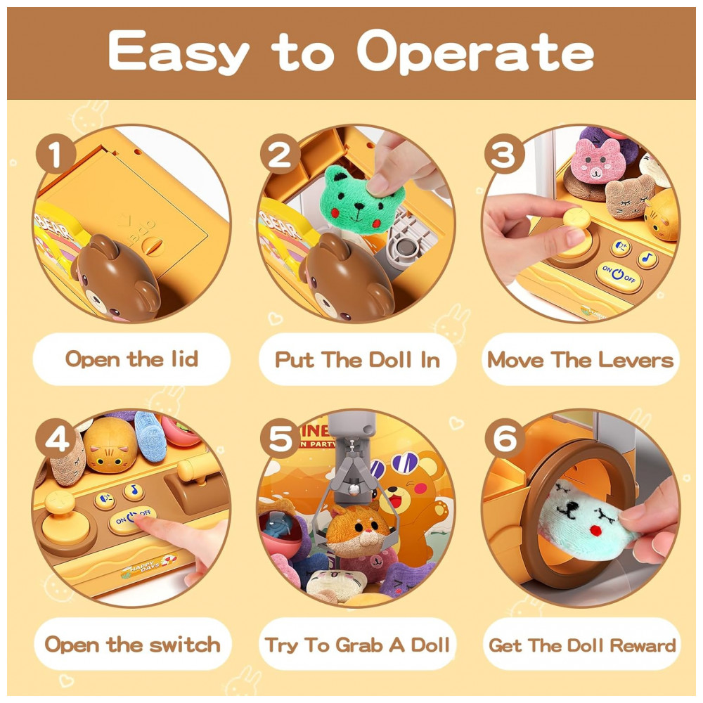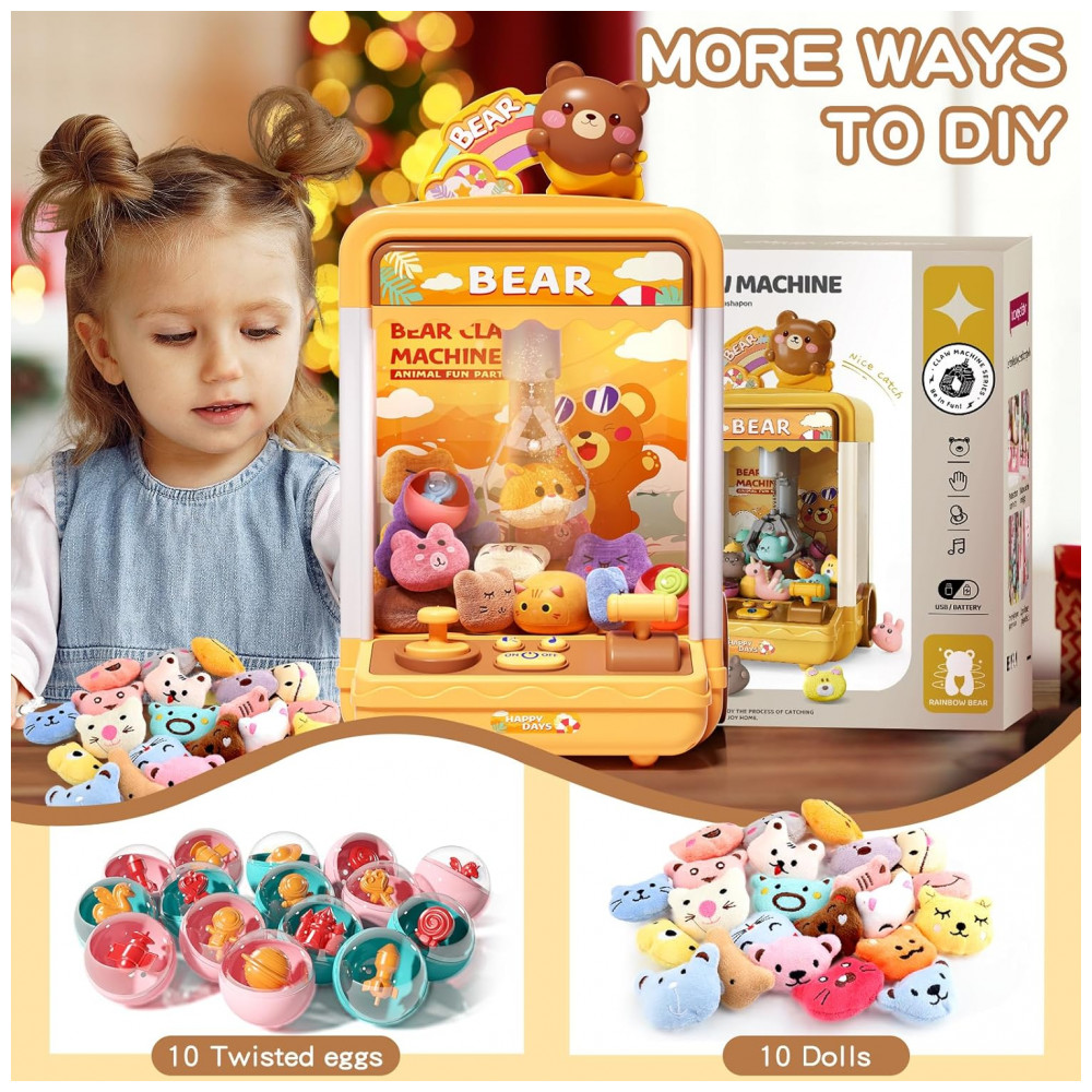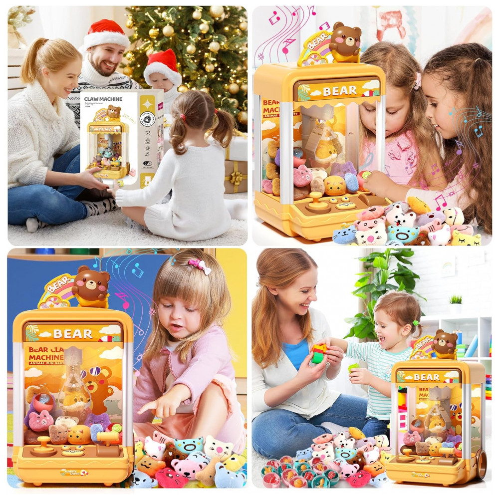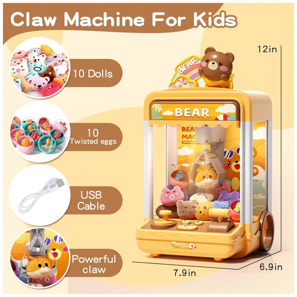 Máquina de Garra AIQI Bear Kids Mini Candy Vending Amarela com Luzes e Som para Crianças