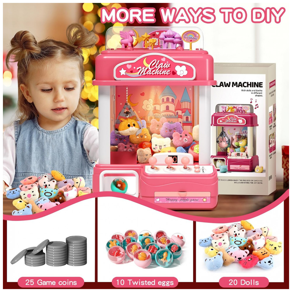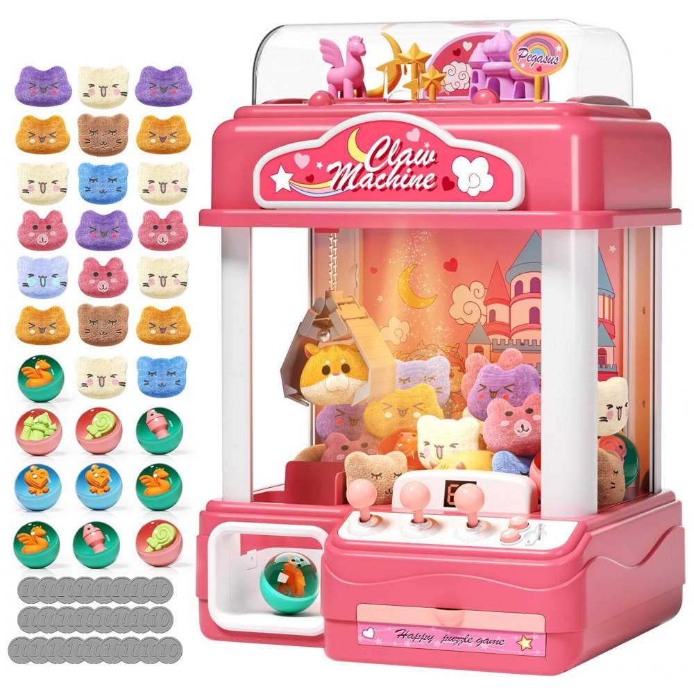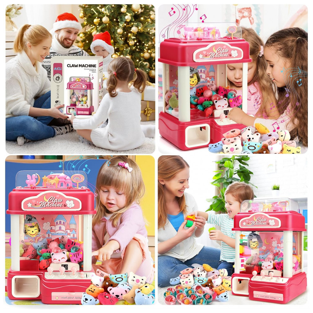Máquina de Garra AIQI Transparente com Luzes e Som 42cm Dispensadora de Prêmios 55 Itens Plástico Rosa Bivolt Para Crianças