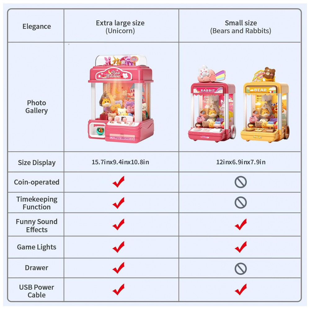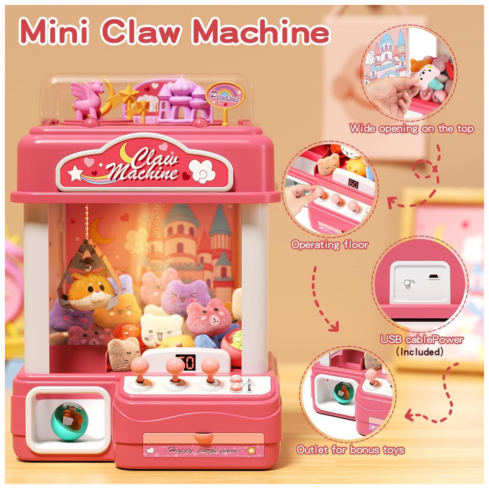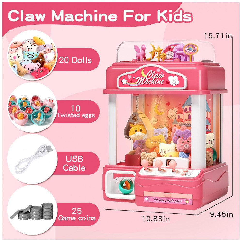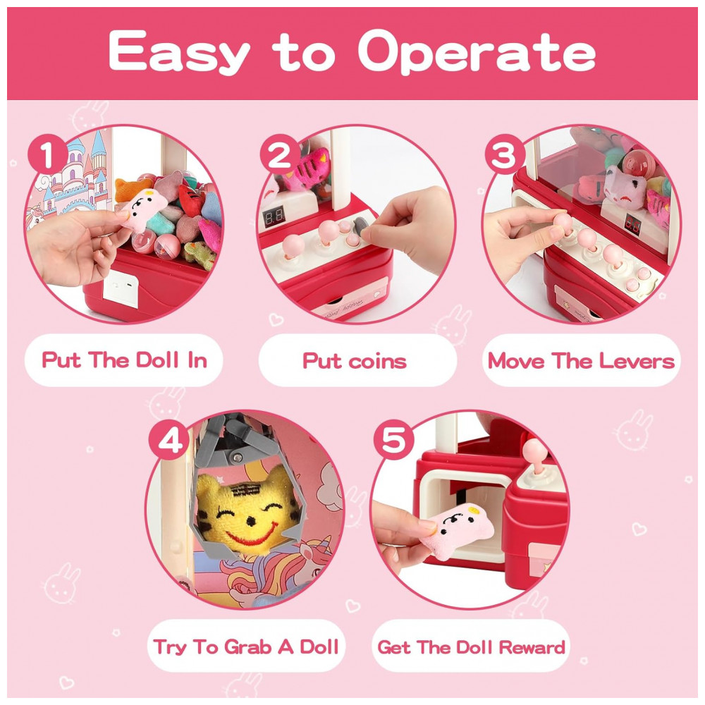 Máquina de Garra AIQI Transparente com Luzes e Som 42cm Dispensadora de Prêmios 55 Itens Plástico Rosa Bivolt Para Crianças