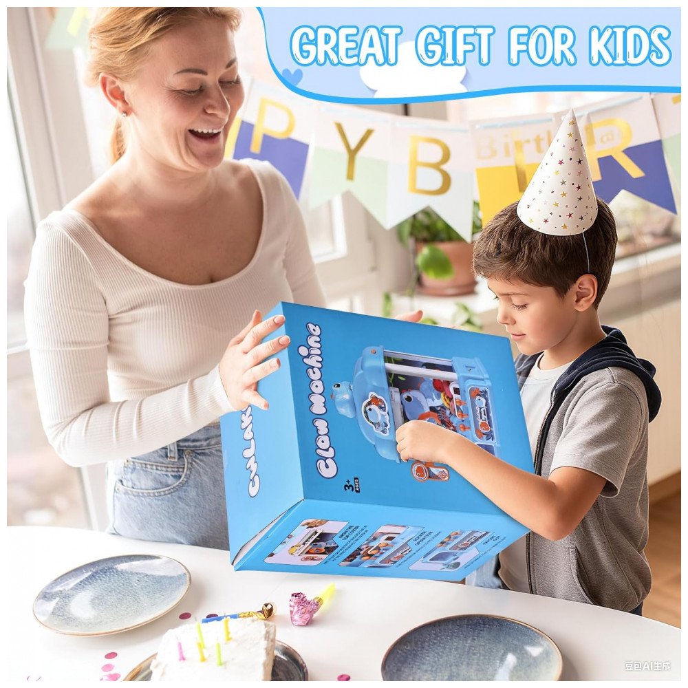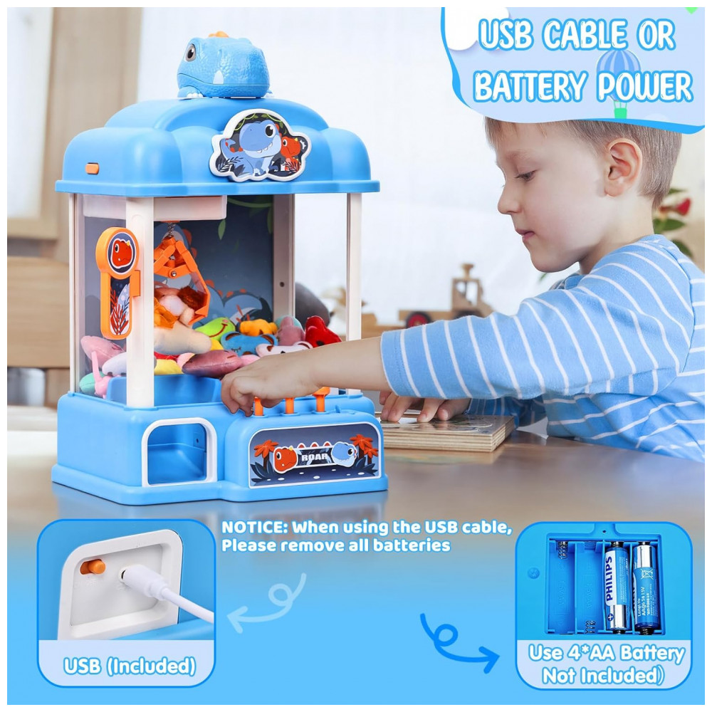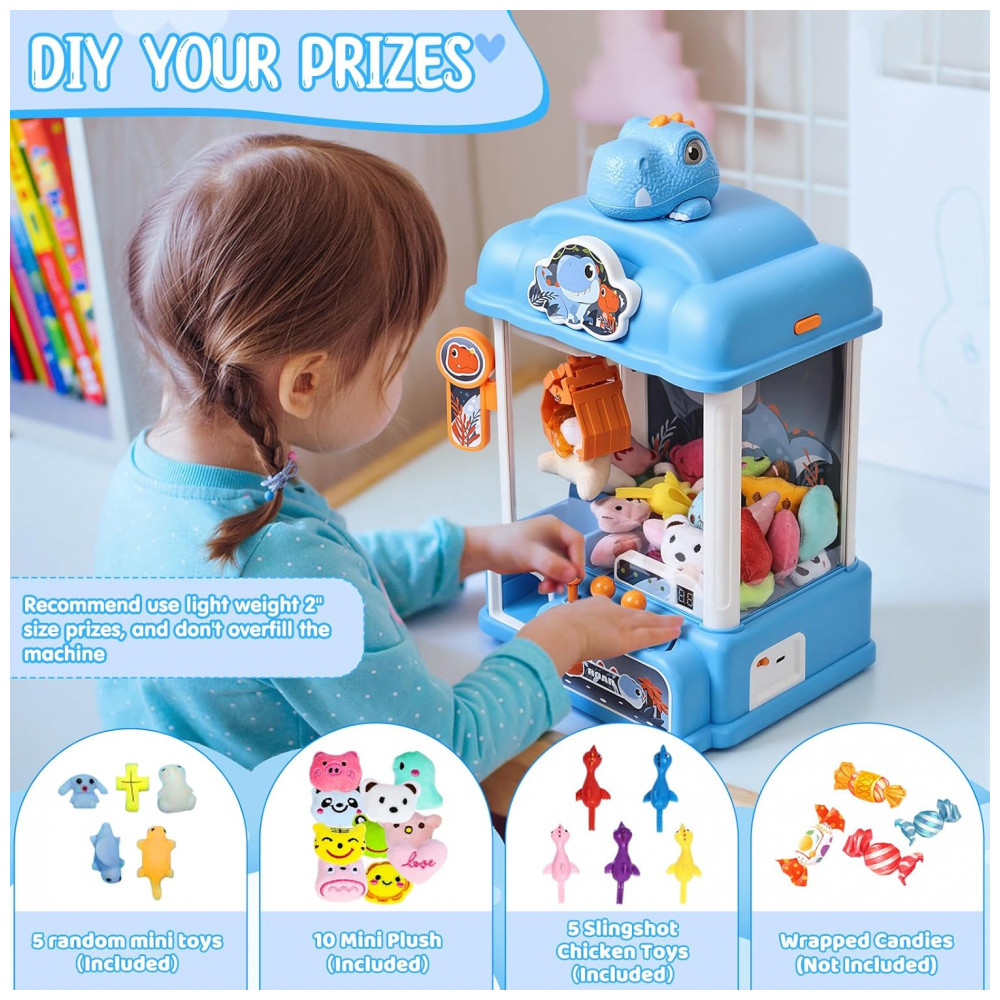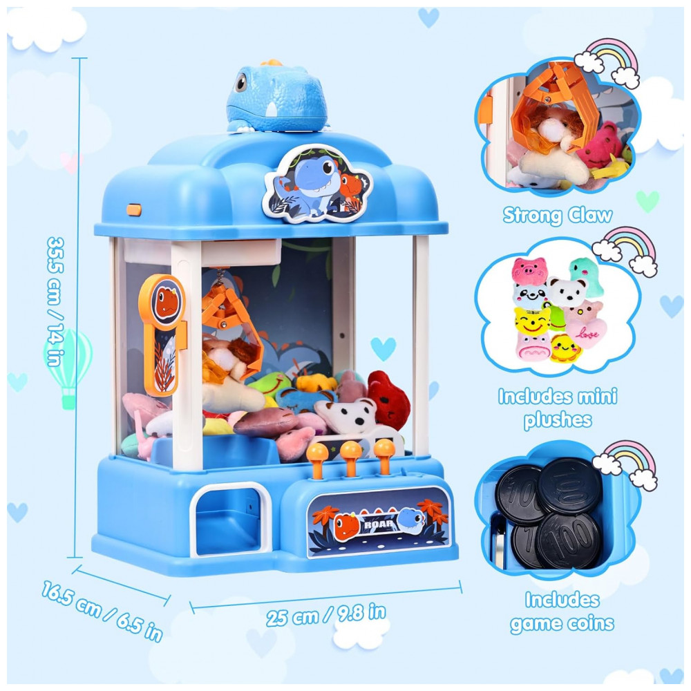 Máquina de Garra Azul da CWLAKON – Mini Vending Machine Infantil com Som Temporizador de 60 s Dinossauro e Prêmios