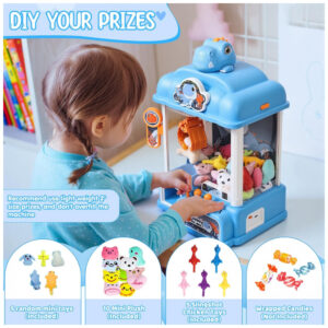 A Máquina de Garra Azul da CWLAKON transporta a emoção dos arcades para dentro de casa com estilo e diversão. Este brinquedo foi projetado para crianças a partir de 3 anos e permite que sejam inseridos moedas de jogo ou brindes, oferecendo uma experiência interativa e personalizada. A garra gira em 360°, enquanto o joystick permite o controle fácil para agarrar prémios — doces, mini brinquedos ou surpresas de Páscoa podem ser usados no interior da máquina. Com efeito sonoro animado e limite de tempo de 60 segundos, o jogo torna-se mais emocionante e competitivo.
