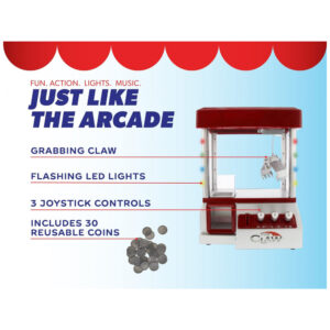 A diversão começa ao inserir uma ficha na máquina, ativando a garra para pegar o prêmio desejado. Com controle preciso através do joystick, é possível manobrar a garra com destreza, garantindo que cada prêmio ou doce seja conquistado com habilidade. Este modelo é compatível com prêmios leves de até 5 cm x 5 cm, além de doces embalados como Cry Babies, Double Bubble e Tootsie Rolls. A máquina acompanha 30 fichas reutilizáveis, prontas para uso imediato, proporcionando horas de entretenimento para crianças e adultos.
