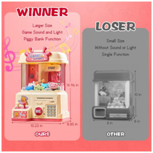 A Máquina de Garra Infantil 2 em 1 Golckuod é um brinquedo interativo que combina a diversão de uma máquina de arcade com a praticidade de um cofrinho, proporcionando horas de entretenimento para crianças de 3 a 14 anos. Com design robusto e atraente na cor rosa, esta máquina permite que as crianças coletem moedas e notas através de uma entrada dedicada, incentivando hábitos de economia de forma lúdica e envolvente.