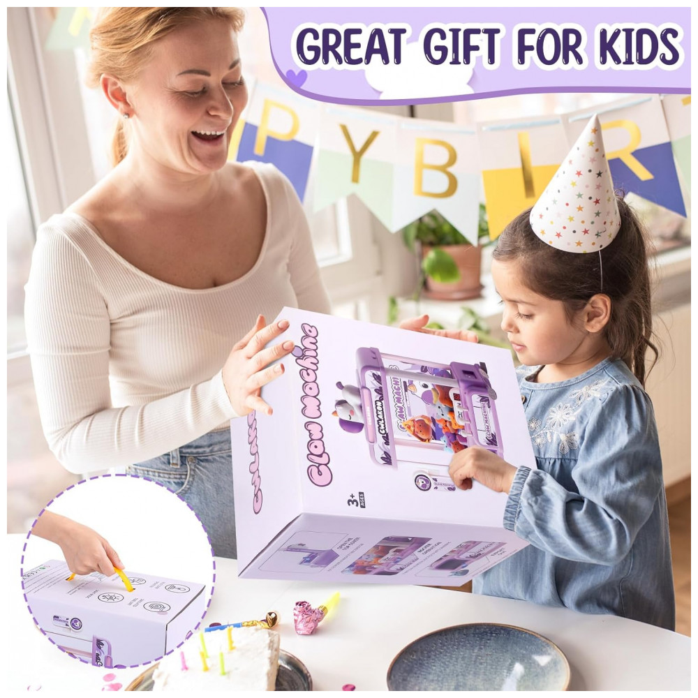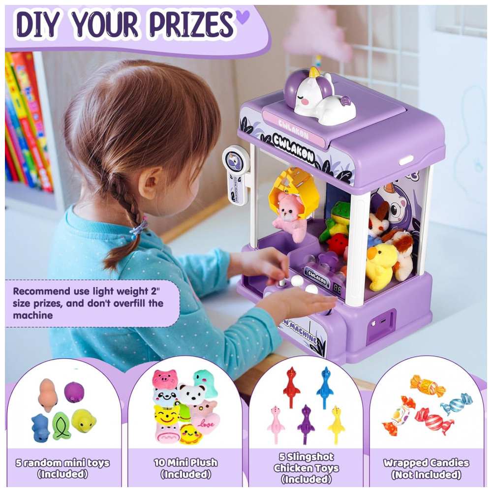Máquina de Garra Mini Arcade CWLAKON Roxa com Som Luzes e Desafio de 60 Segundos