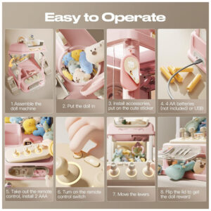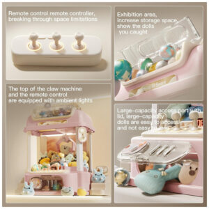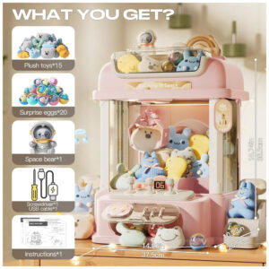 A máquina apresenta contagem regressiva de 60 segundos por rodada, desafiando os jogadores a capturar o máximo de prêmios dentro do tempo limite. Luzes LED vibrantes e efeitos sonoros realistas tornam a experiência envolvente e estimulante. É possível desligar o som para um modo silencioso, ideal para ambientes tranquilos. A garra metálica flexível gira 360 graus e foi projetada para agarrar brinquedos, doces ou pequenos objetos com firmeza.